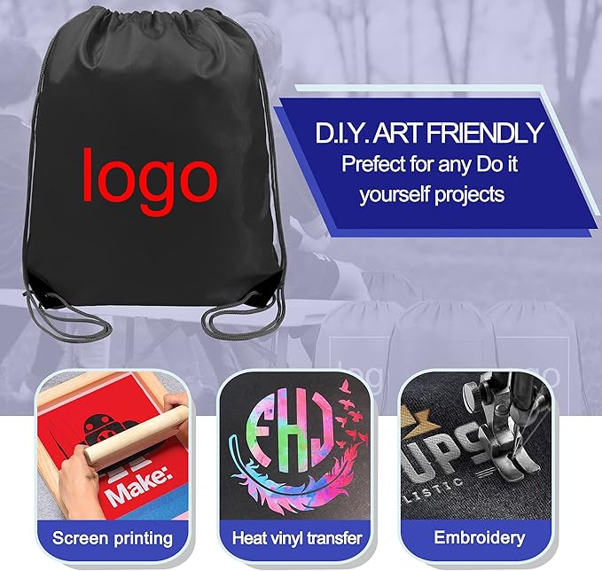 • 【FEEL FREE TO DIY】:Our drawstring backpack bulk is perfect for various DIY projects. You can DIY your favorite names, logos, characters, and images on it as a special gift, team pack, giveaway, or prize by using thermal printing, tie-dye, fabric markers, paint, or even brushes. Print or draw your DIY design on the string backpack by yourself can be held as a very memorable event. Send your designed draw string bags pack to your families or friends and bring them happiness.