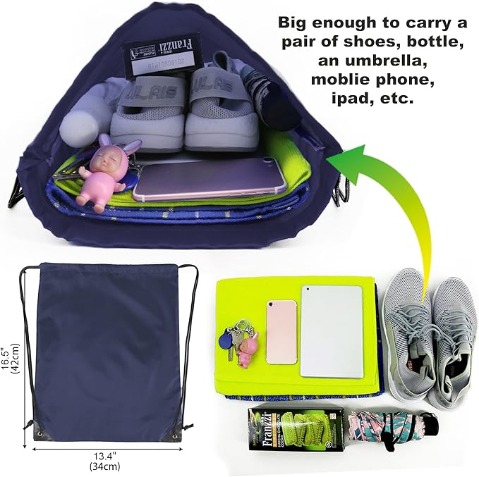 - 【DURABLE】Our draw string bag is made from polyester fabric, so they are shape-retaining strongly. You can fold them up when not in use, and they won't take up much space when folded, and they still look like new next time you use them. And the sewing of the drawstring bags is strong, which makes them more sturdy to hold heavy stuff safely and not easy to tear, the drawstring backpack can last for years, it can store your things when you don't want it.