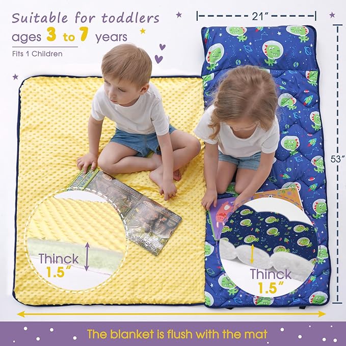 - EXTRA THICK AND COZY SLUMBER BAG: Our Toddler Nap Mat offers extra-thick, cushioned, quilted padding for superior comfort. Perfect for boys and girls aged 2-7 during naptime, rest, and sleepovers at prek, preschool, daycare, and kindergarten