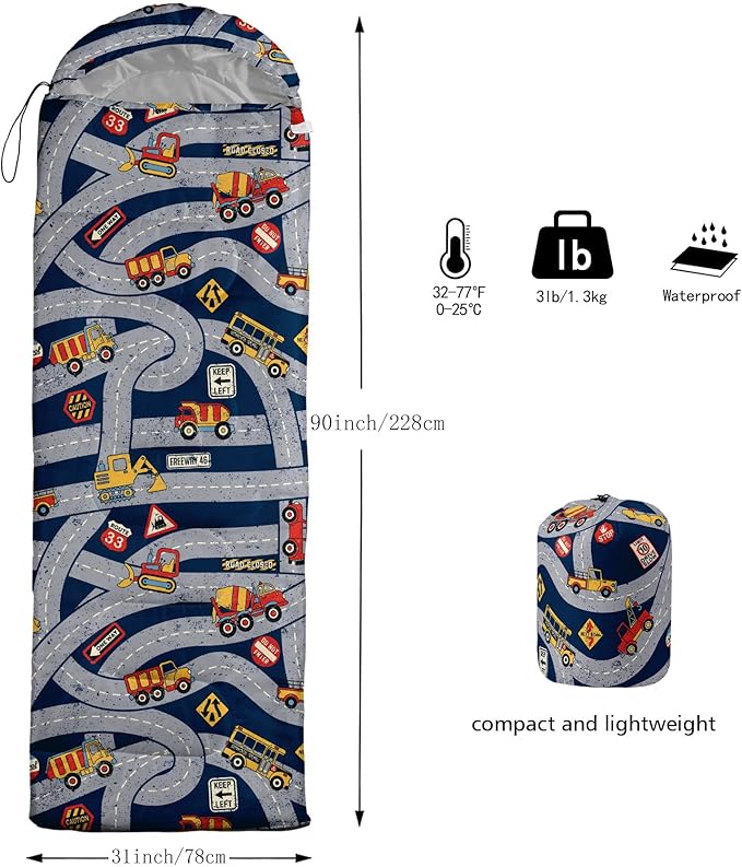 - SUITABLE:The sleeping bag can be used for 3 Seasons.SIZE:90.5'L x 31.5'W Suggenal extreme temperature: 41 ℉ -77 ℉.Applicable in a variety of scenarios,such as Travel camping pajamas party,It's very suitable for you to travel with your children.Half-circle hood with adjustable drawstring,which can keep you warm and prevent your humidity