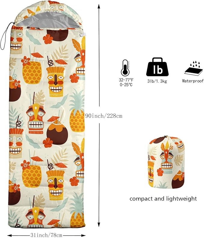 - SUITABLE:The sleeping bag can be used for 3 Seasons.SIZE:90.5'L x 31.5'W Suggenal extreme temperature: 41 ℉ -77 ℉.Applicable in a variety of scenarios,such as Travel camping pajamas party,It's very suitable for you to travel with your children.Half-circle hood with adjustable drawstring,which can keep you warm and prevent your humidity