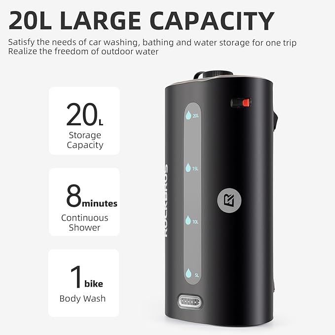 ROCKBROS Portable Shower for Camping Shower Bag 5 Gallons/20L Large Capacity Shower Bag for Camping Gear Solar Shower Bag for Camping Outdoor