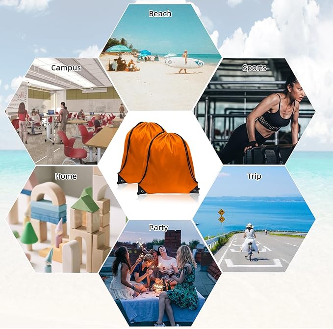 - Multipurpose for everyday usage: These cinch sack drawstring backpacks are suitable for various occasions, such as birthday parties, camping themed parties, pool parties, and you can also bring them with you when working, traveling, exercising, or even shopping at the supermarket. These bulk drawstring bags can also be used for home storage and can be shared with family and friends. These pull string bags can also be folded, making them very easy to carry.