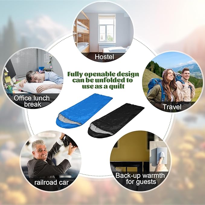 - Multiple Purpose: these compact sleeping bags are suitable for sleeping while camping, hiking, traveling, exploring, mountaineering, or you can unzip all zippers and use them as a comforter or blanket; You can also donate to the homeless and bring warmth to them