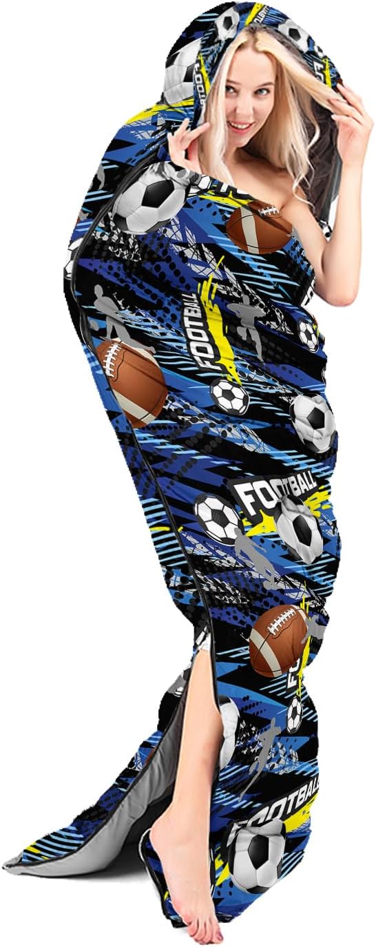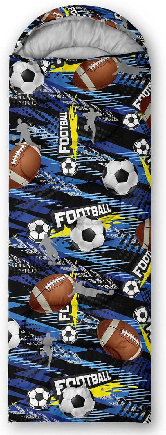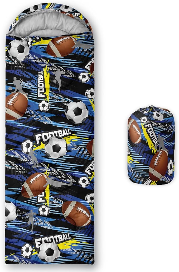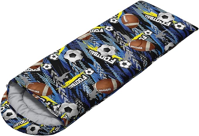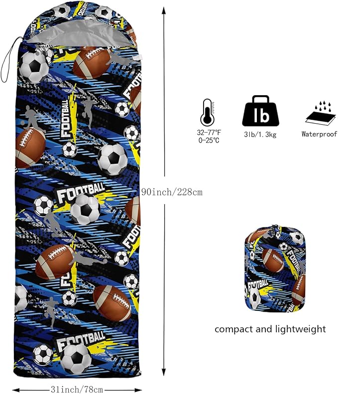 - Rugby Football sleeping bags For All Seasons- Our camping sleeping bags are designed to give you a good night's sleep. Ideal for spring,summer,fall,and winter,rated from 32°F to 77°F (optimal comfort temperature is 50°F to 65°F). Stay comfortable and warm in any condition at normal altitude. Can be used for any outdoor adventure,class camping,summer camps,couch surfing,indoor blanket,and as an emergency blanket for vehicles.
