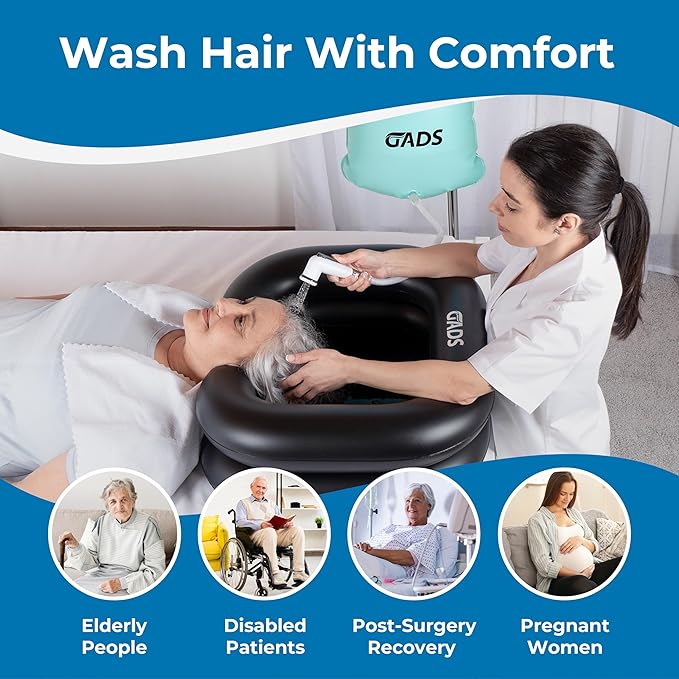 - Easy to Use: Simply fill the bag with warm water from any regular kitchen or bathroom faucet. The flexible water hose provides ample slack for easy maneuverability during the hair washing process, ensuring a hassle-free experience for caregivers.