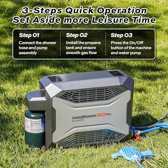 - 【Tailoring Shower Experience to Perfection】InstaShower GO Pro comes with customizable temperature control, you can adjust the water temp to your desired level. The shower head features both a water flow setting and a spray pattern setting, giving you the freedom to choose between gentle or strong water flow. With a heating capacity of 22,000 BTU, InstaShower Go Pro heats water within 10 seconds, allowing you to bid farewell to the agony of waiting