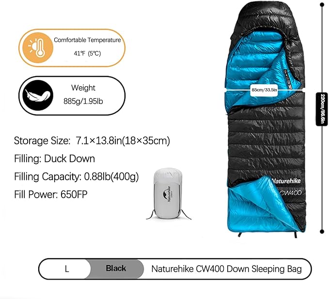 Naturehike Ultralight Down Cold Weather Sleeping Bag, 650FP Compact Sleeping Bag 3-4 Season for Adults & Kids, Backpacking, Camping, Hiking, Traveling with Compression Sack