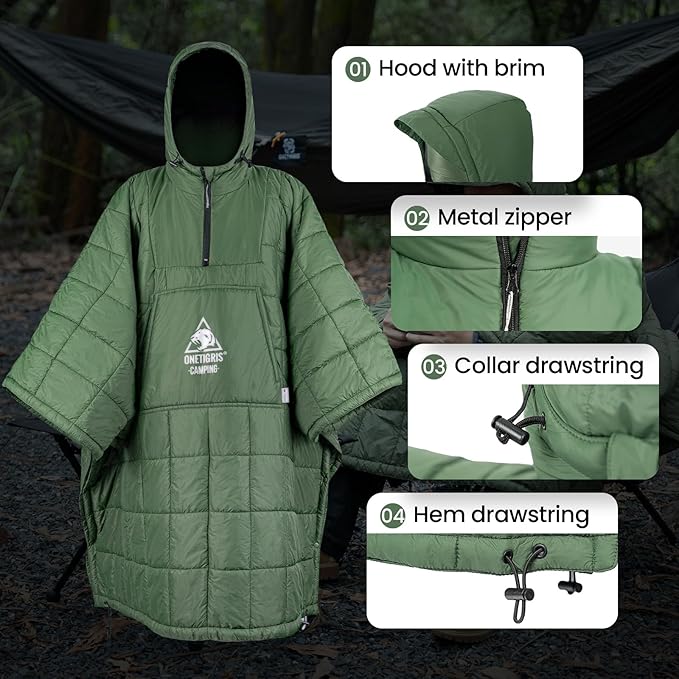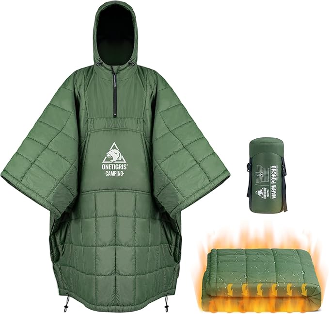 OneTigris Camping Blanket Honcho Poncho with 3M Thinsulate Insulation,Wearable Sleeping Bag Poncho for Camping Large Ultralight Water-Resisitant Warm Wearable Blanket for Outdoor Camping,Hiking