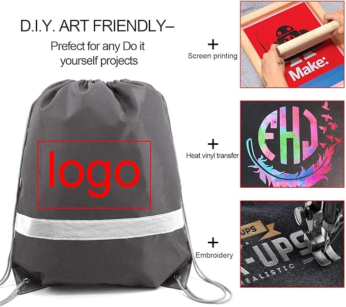 • 【DIY FRIENDLY】-- Our drawstring bags are perfect for any DIY project, they can be used not only for silkscreen printing, heat transfer vinyl and embroidery, but also for tie-dye, fabric markers and puffed paint. If you use these drawstring party gift bags as a gift bag for a team or theme party, you can print their name and number on these drawstring bags and they will be very popular!