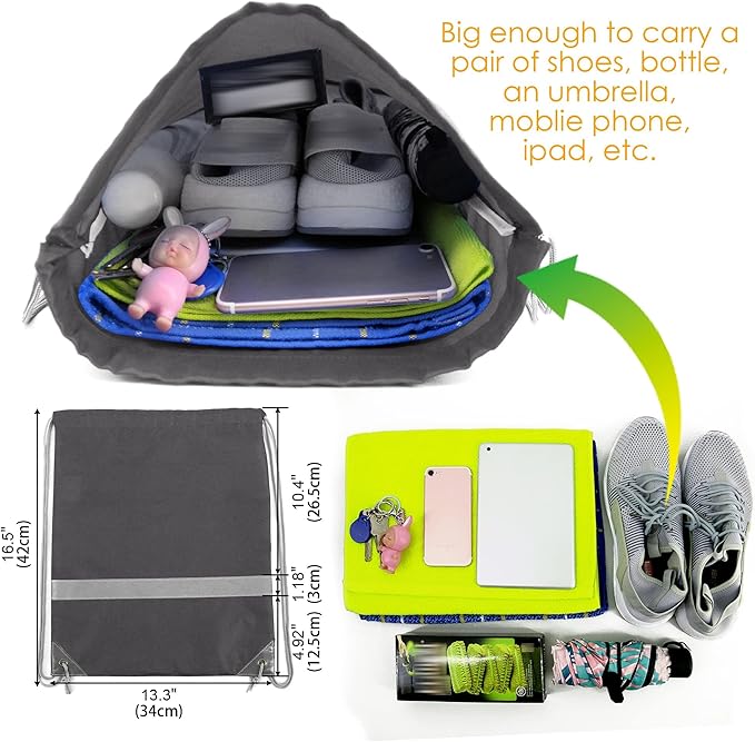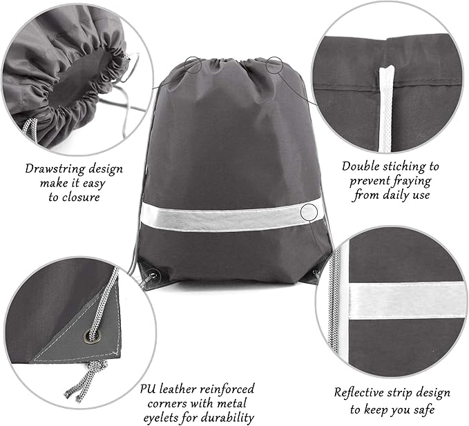 • 【STURDY & EXTRA REFLECTIVE STRIP】-- The bags are very sturdy and withstands daily wear and tear. Double stitches for all seams, making the bag is not easy to fall off and can last long. Our drawstring bags have PU leather reinforced corners, durable drawstring cords, and metal eyelets. These designs ensure that our drawstring bag is more durable. Also, the extra reflective strip can enhance the high visibility to ensure your safety while outdoor in the dark or dusk.