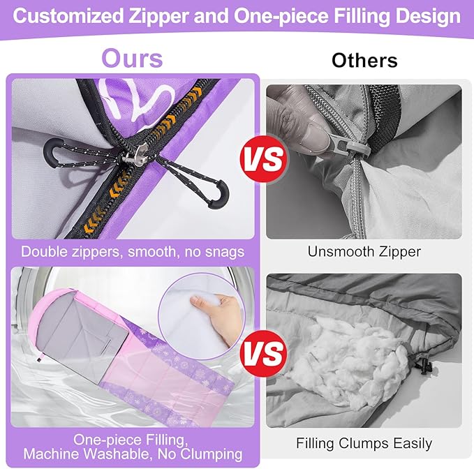 - Unique Design: Sleeping bags for adults, comes with a custom-printed pattern, bright colors, the smooth double zippers won't snag; Bottom zipper design, breathable, allowing your feet to move freely, and you can fully unzip the bottom to use it as a mat or blanket