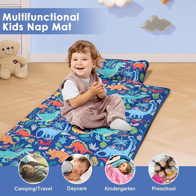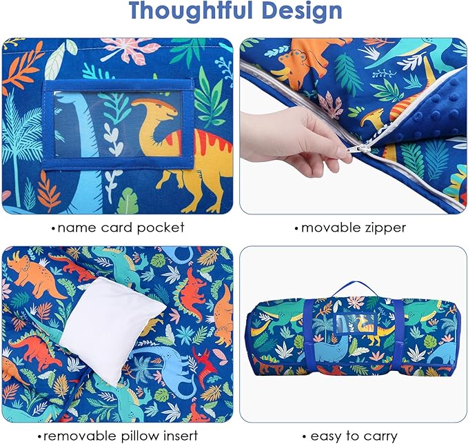 - 【User-Friendly Design】Our kids nap mat is a perfect portable choice for parents and children.The sleeping bag is furnished with Velcro straps and a handle, as well as a transparent name card pocket. Children can roll it up and lift it, easy to carry. It's practical for not only home but also daycare, preschool, nursery and outdoor activities.