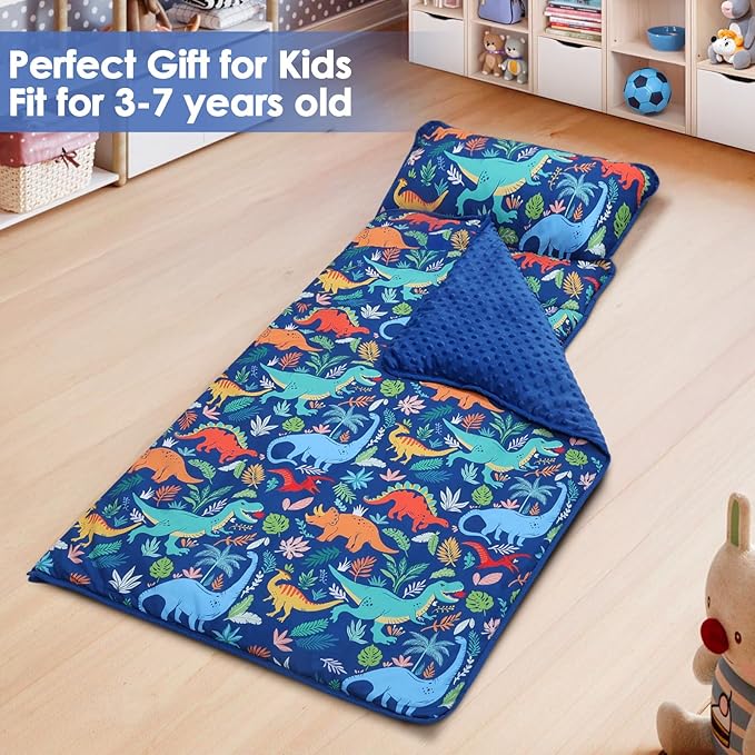 Kids Sleeping Bag Nap Mat with Removable Pillow and Blanket,Extra Thick Large 2 in 1 Slumber Bags for Boys Girls,Toddler Nap Mat for Preschool Daycare Travel Camping