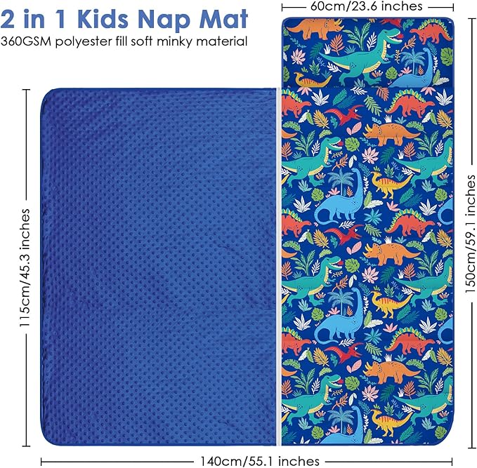 - 【2-In-1 Detachable Design】 Featuring a convenient zipper,the blanket is not only a reliable warm cover when used as a kids nap mat but also the detachable blanket can be used alone anywhere,keeping warmth for your kids.