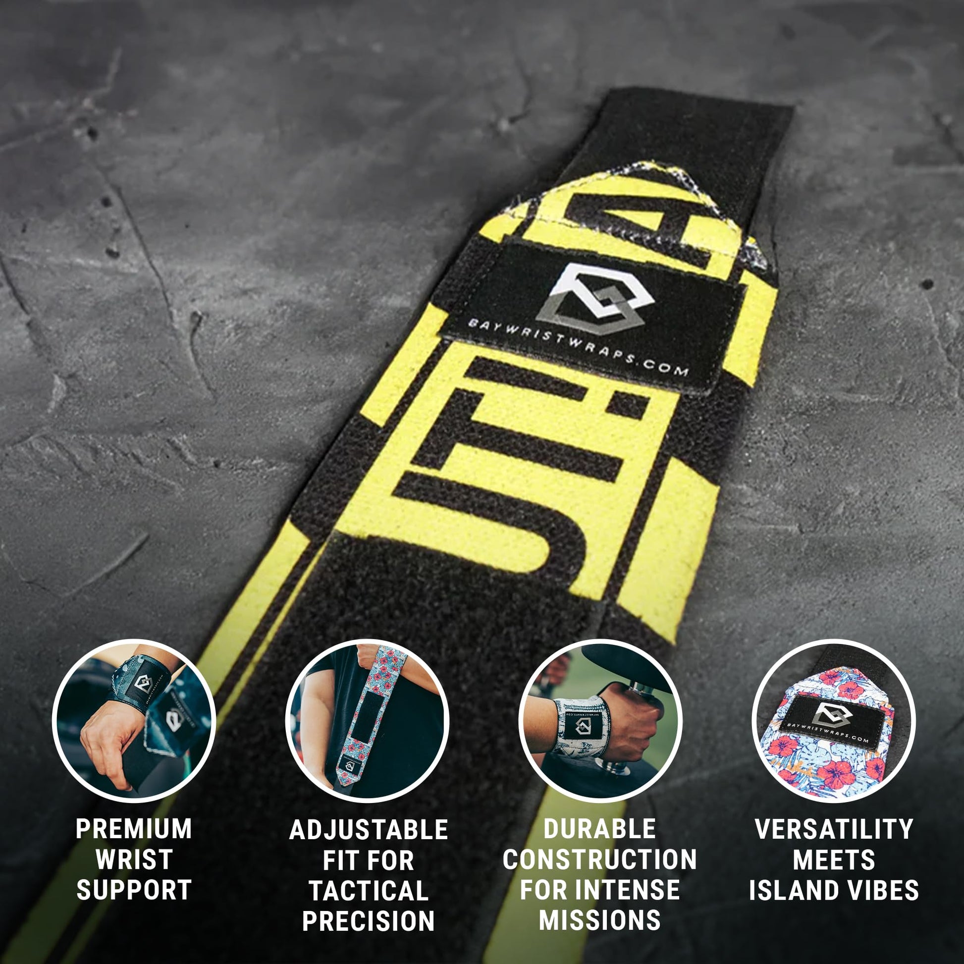 Bay Wrist Wraps Weightlifting Workout Wrist Brace - Adjustable, One Size Fits All - Comfort Wrist Wraps for Weightlifting with Thumb Loop, Lifting Wrist Straps in Caution - 18-inch Wrist Wrap