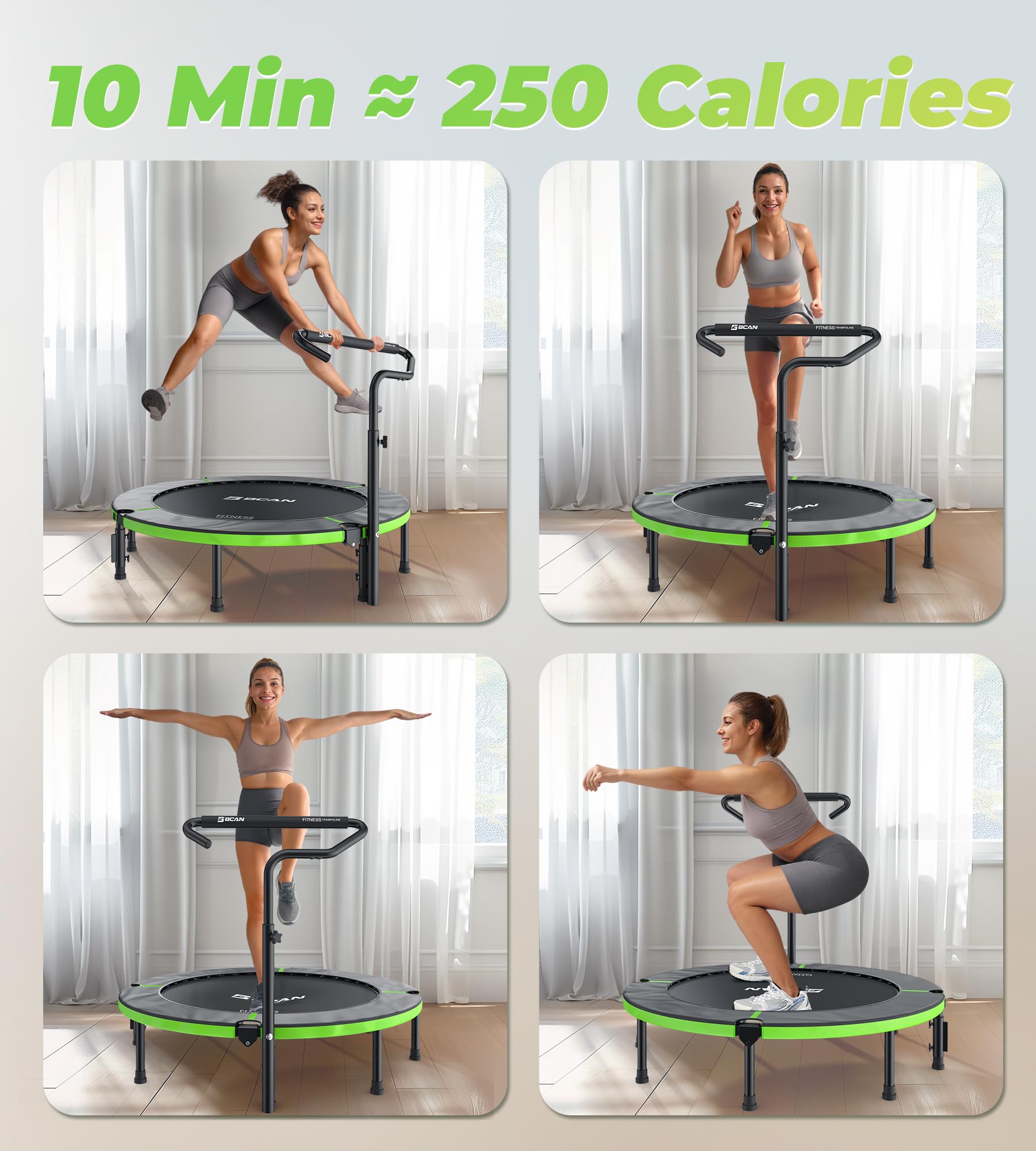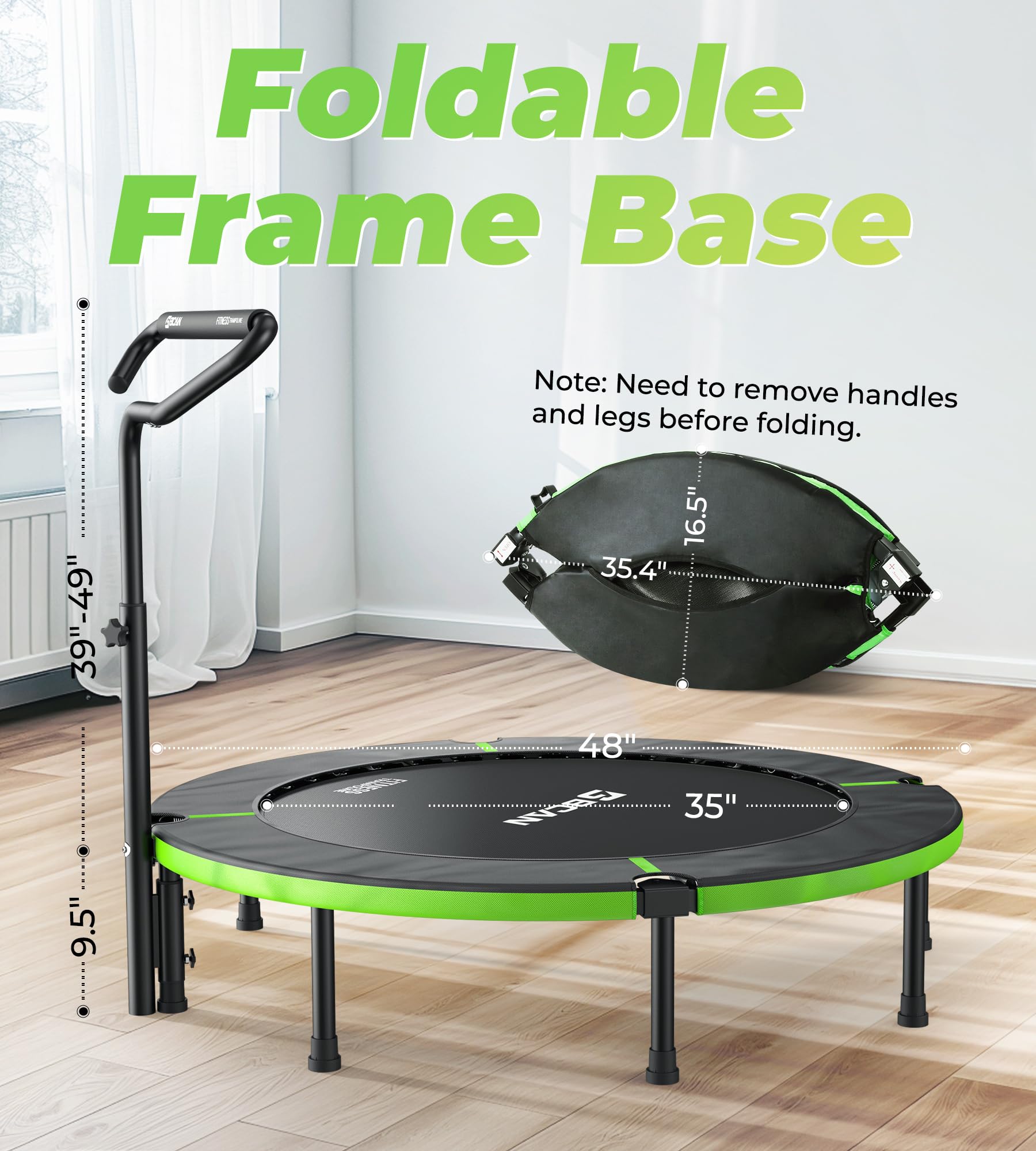 BCAN 40"/48" Foldable Mini Trampoline, Rebounder Trampoline for Adults, U/T Shape Adjustable Foam Handle, Exercise Rebounder for Kids Adults Indoor/Garden Workout, Max Load 330lbs/440lbs