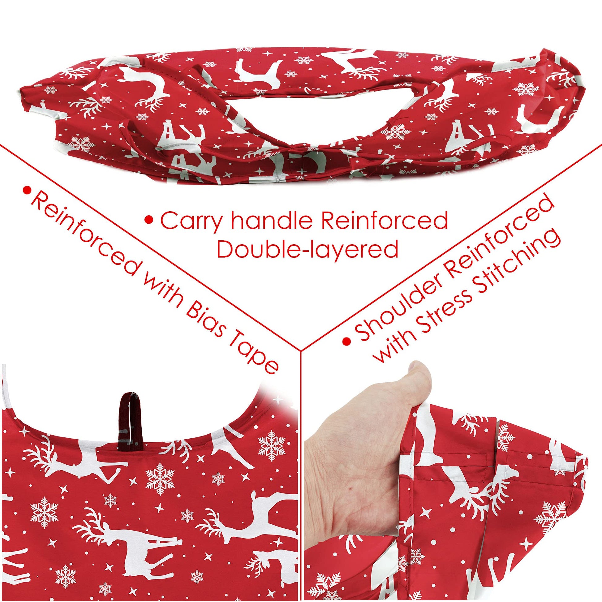 - 10 PACK & CHRISTMAS-THEMED PRINTS: The Christmas reusable grocery tote bags bulk contains 10 pack bags, which can meet groceries, outdoor activities, parties, festival usage in a time. All the 10 pack are of Christmas-themed prints, such as reindeer, snowflake, Christams tree, candy cane ect, in red and green, eye-catching enough for any Christmas celebritions.