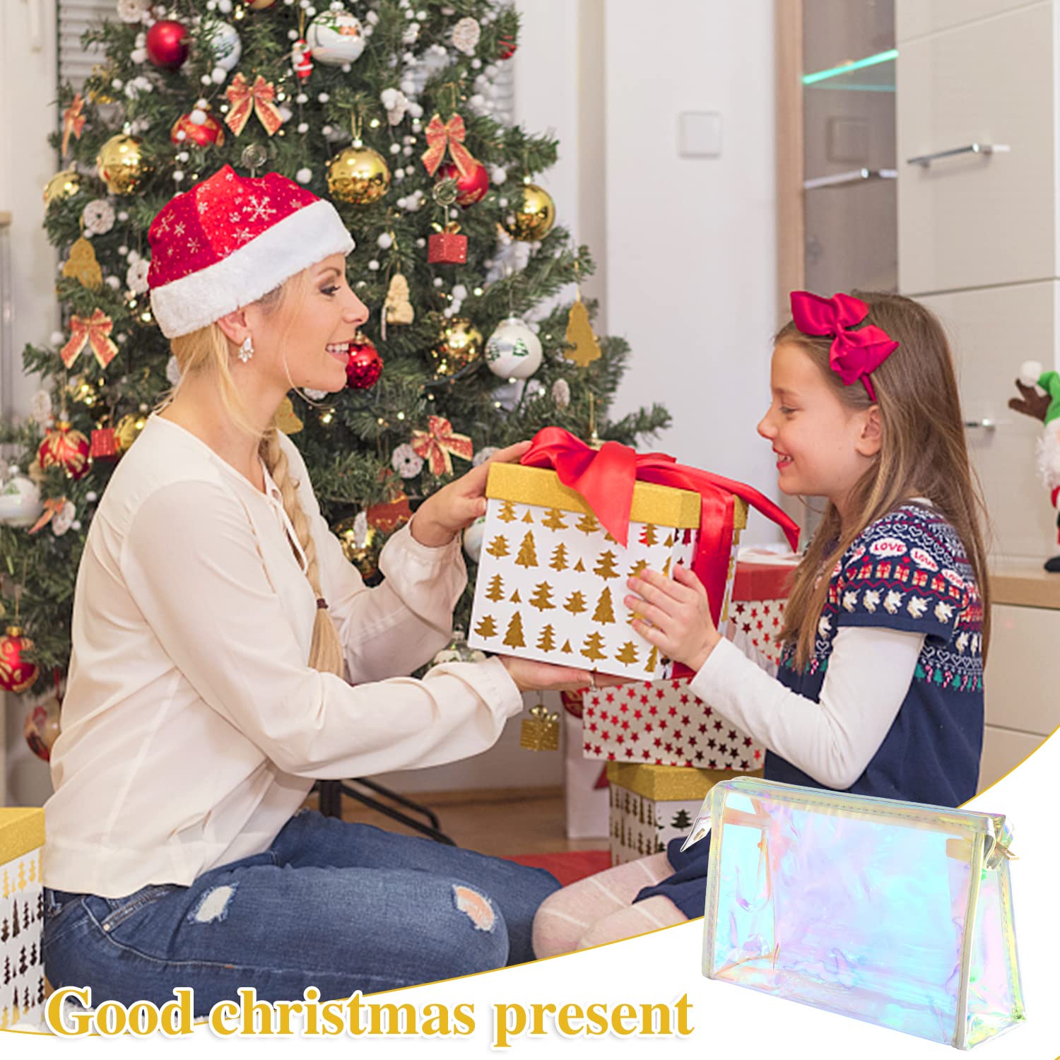 BESARME 10 Pcs Holographic Makeup Bags, Clear PVC Makeup Bag Iridescent Pouch Portable Zippered Toiletry Bag Waterproof Cosmetic Bags Stocking Stuffers for Women Girls Bathroom Vacation