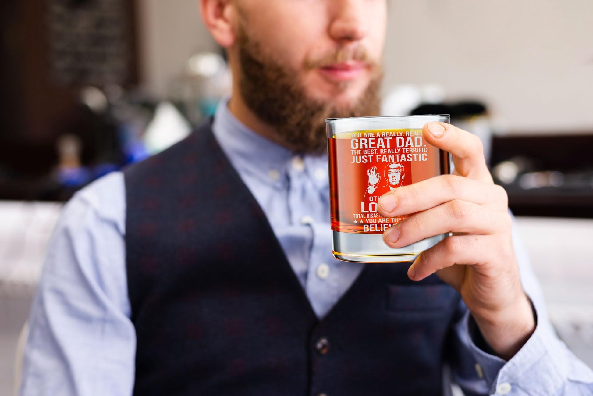 - MULTI-PURPOSES FOR ANY OCCASIONS - Our best whiskey glass is suitable for any indoor place. Let your partner enjoy favorite drinks no matter where they are. This glass fit for all occasions Christmas, Birthday, Anniversary, Camping, Party Year End, Thanks Giving, Grandparent Day, New Year.