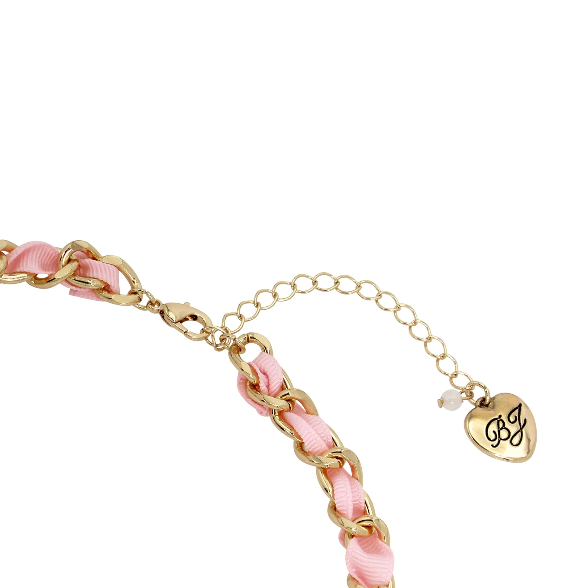 - TRENDY NECKLACES : Striking necklace with woven pink ribbon and festive Christmas reindeer adorned with Santa hat and pearls.