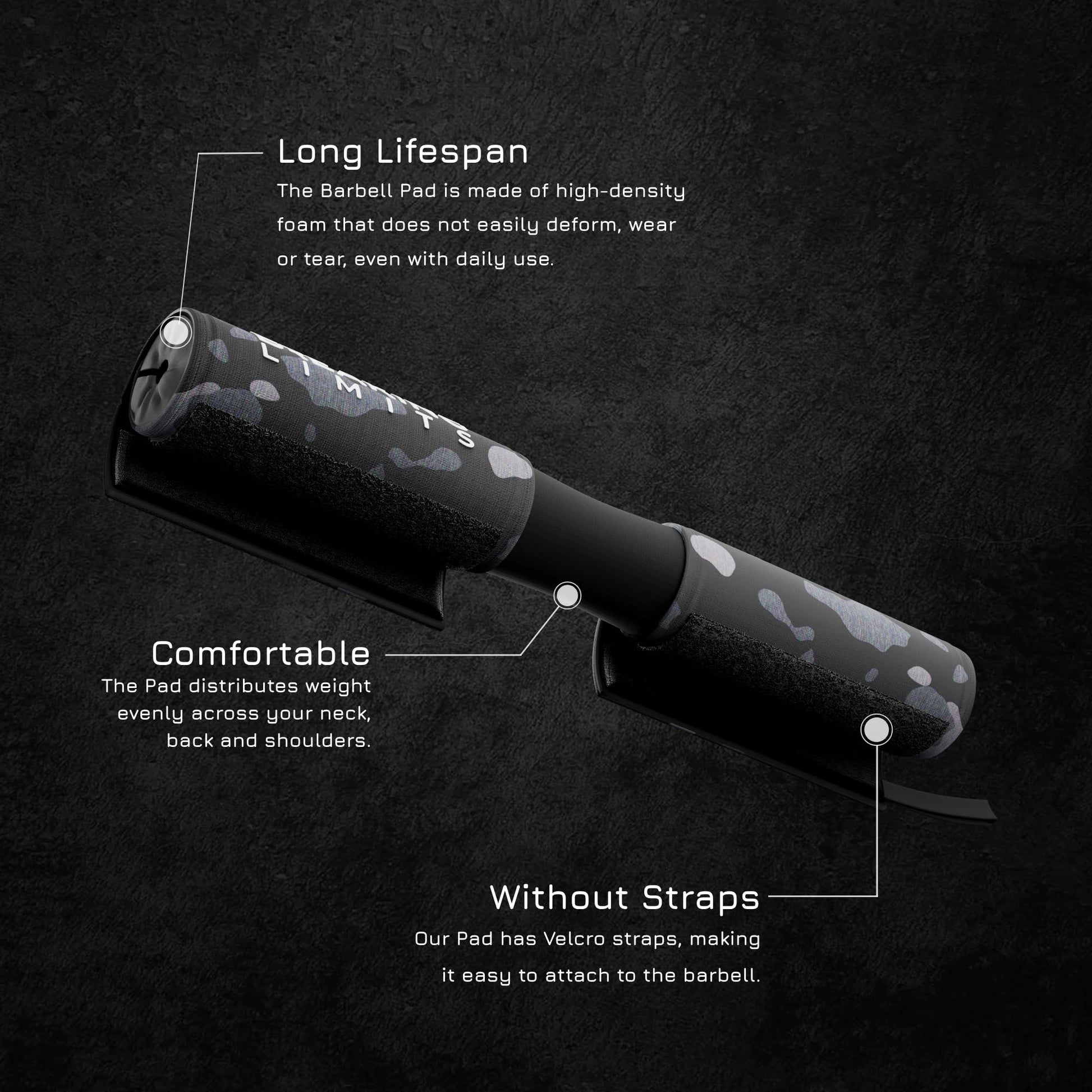 Thick cushion your barbell bars with the Breaking Limits barbell pads.