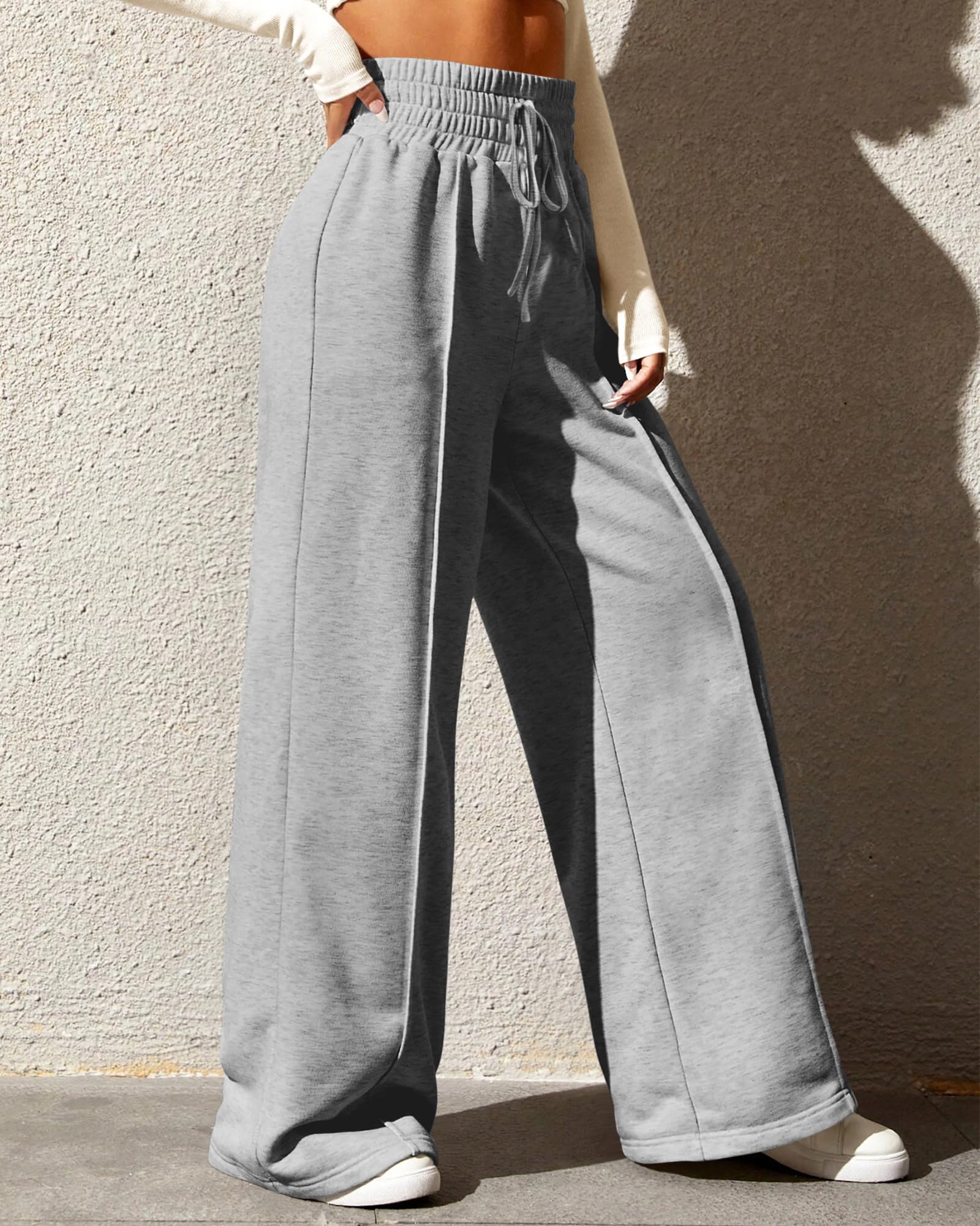 BTFBM Women's Causal Drawstring High Waist Baggy Straight Wide Leg Sweatpants with Pockets(Solid Light Grey,Medium)