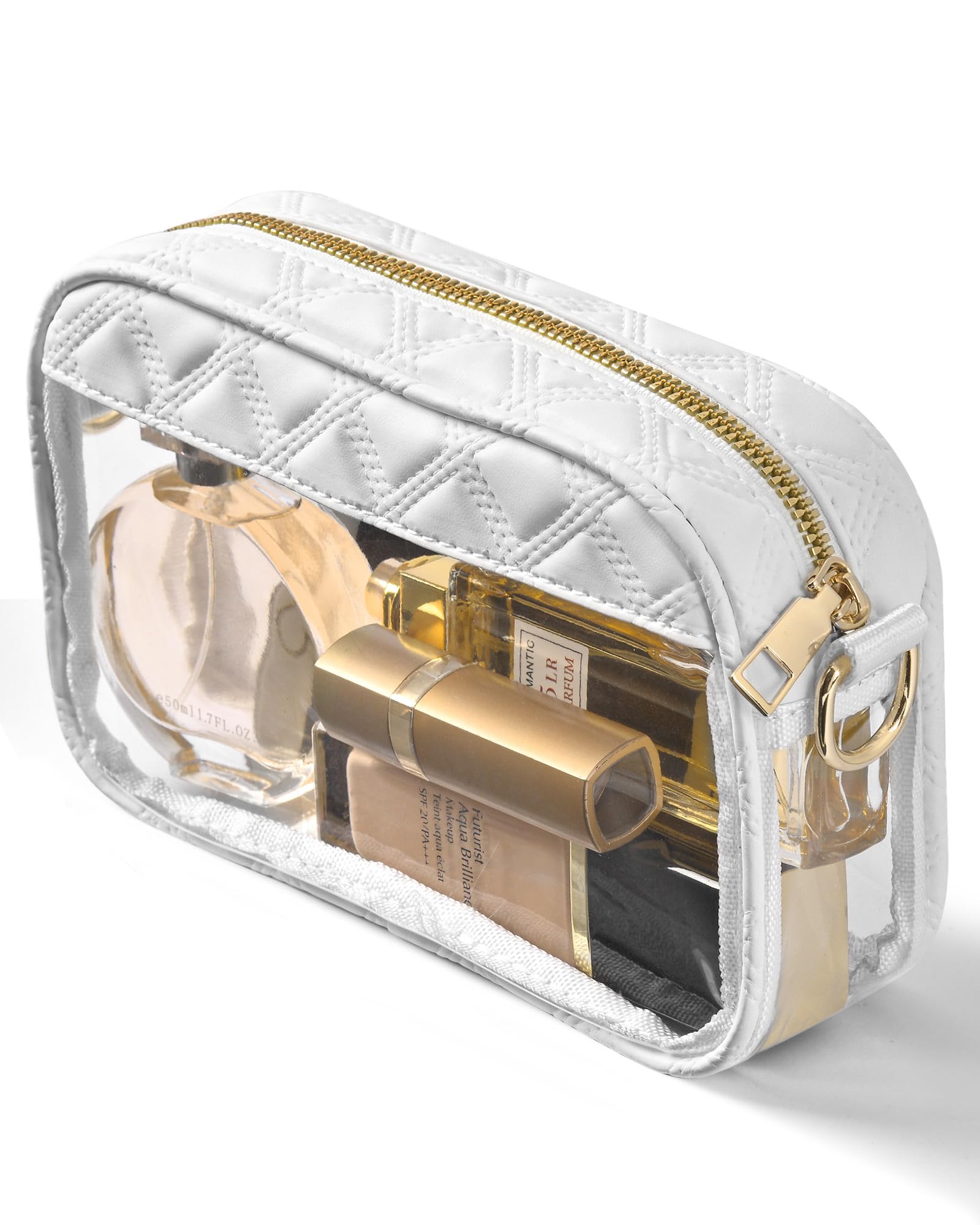 - Waterproof PU leather and PVC Material: Crafted from premium PU leather and stable PVC, clear bag for stadium events is not only a stylish accessory but a fortress for your essentials. Whether braving a drizzle at a football game or caught in a splash at a pool party, clear bag for stadium events keeps your items bone dry. Reinforced stitching fortifies the clear bags against daily wear and tear, while the easy-to-clean material ensures it's always ready for your next escapade(Patent pending)