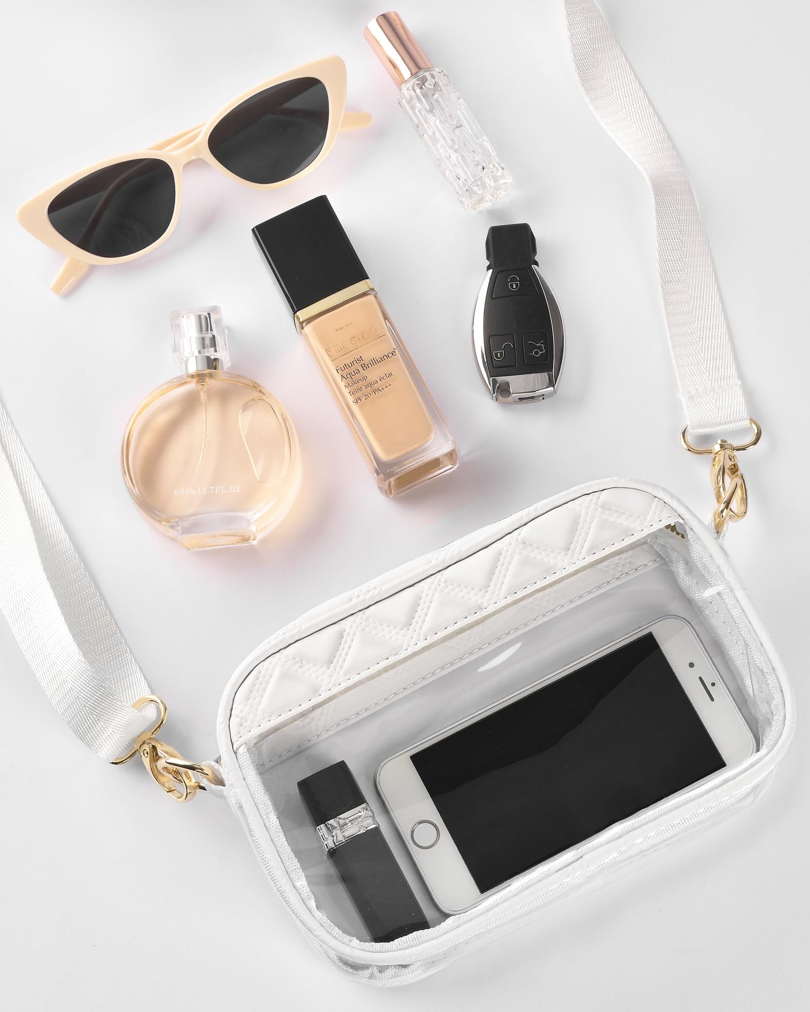 - Clear Bag Stadium Approved: Sized perfectly at 7.8 x 5.2 x 2 inches, clear crossbody bag stadium approved meets stadium guidelines effortlessly, making it your go-to accessory for concerts, sports games, and festivals. Its spacious compartment securely holds everything from your sunglasses to your smartphone. Clear crossbody bag stadium approved zipper locks away your valuables, and the see-through bag design allows for quick security checks, whisking you faster into the excitement.