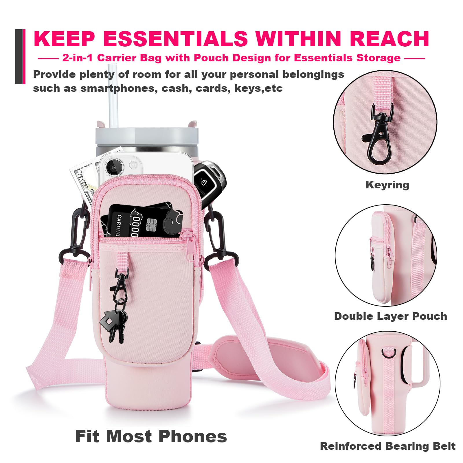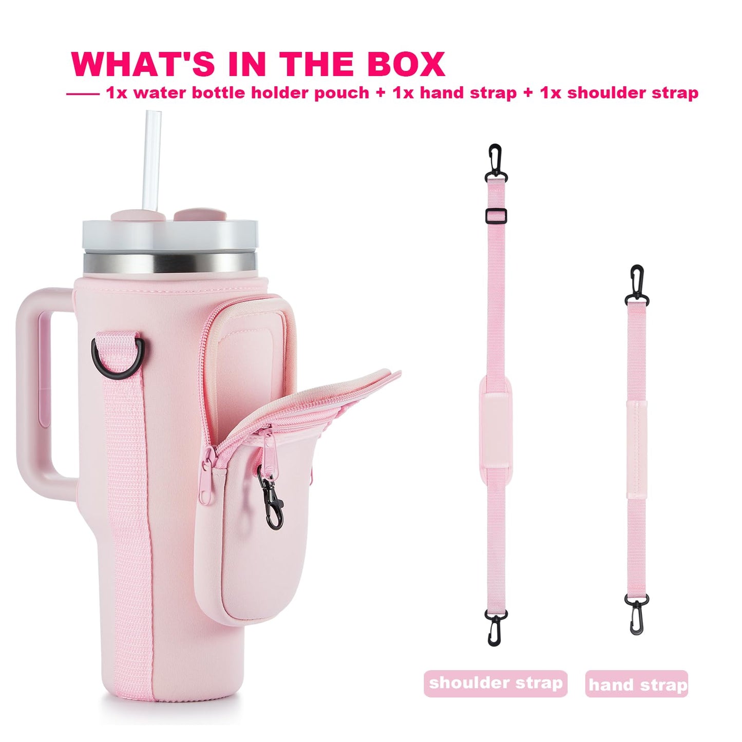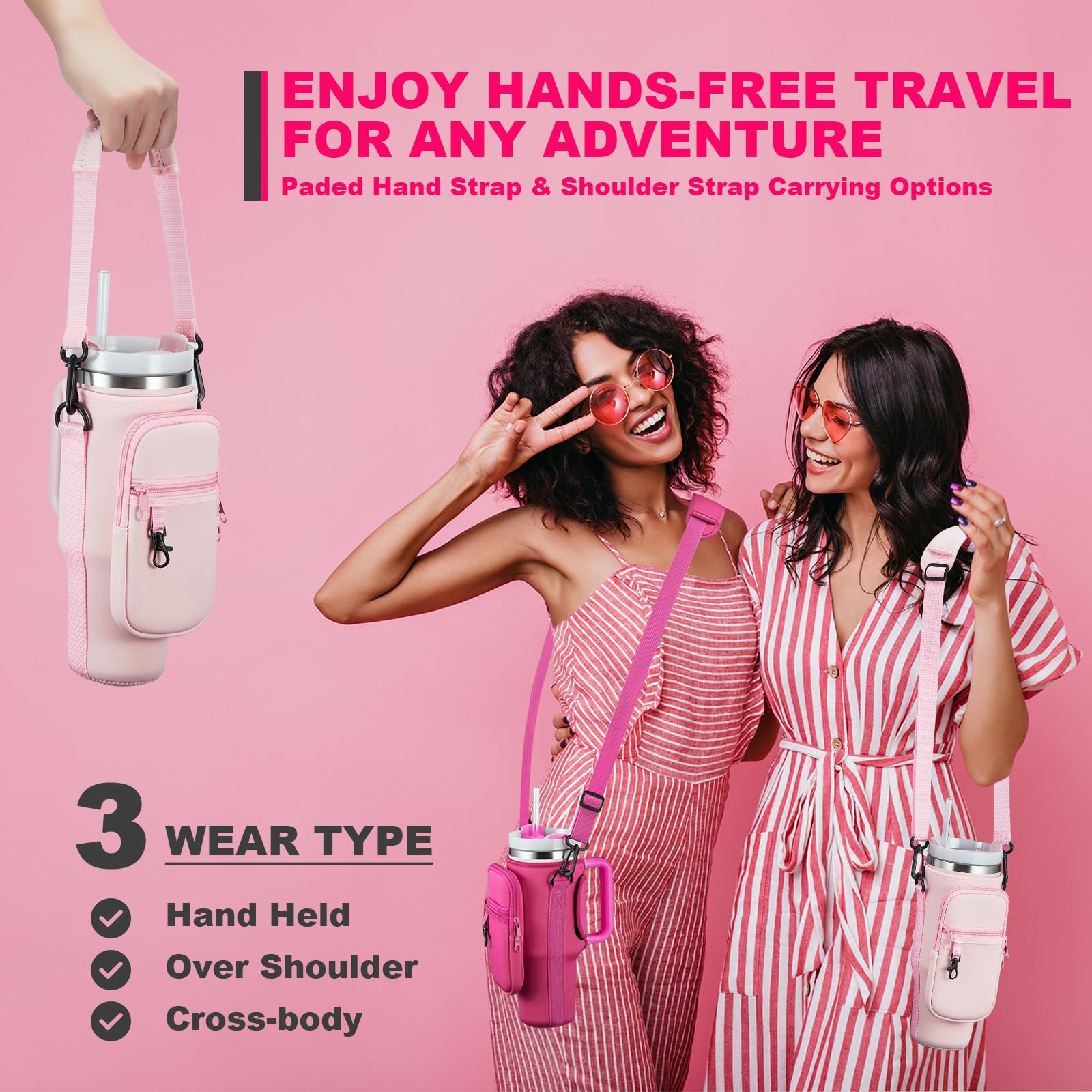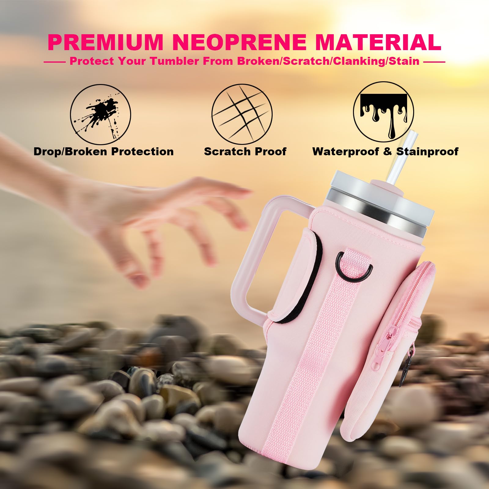 - Style Meets Function: In a cute Pink hue, this tumbler sleeve is not just practical but also a fashion statement. Stand out at social gatherings and be the center of attention while keeping your drink close at hand. it's also perfect for walking, biking, camping, hiking, school, commuting, or even if you're at the beach, gym, or sporting events. And the water bottle holder with strap is a perfect gift for stanley fans.