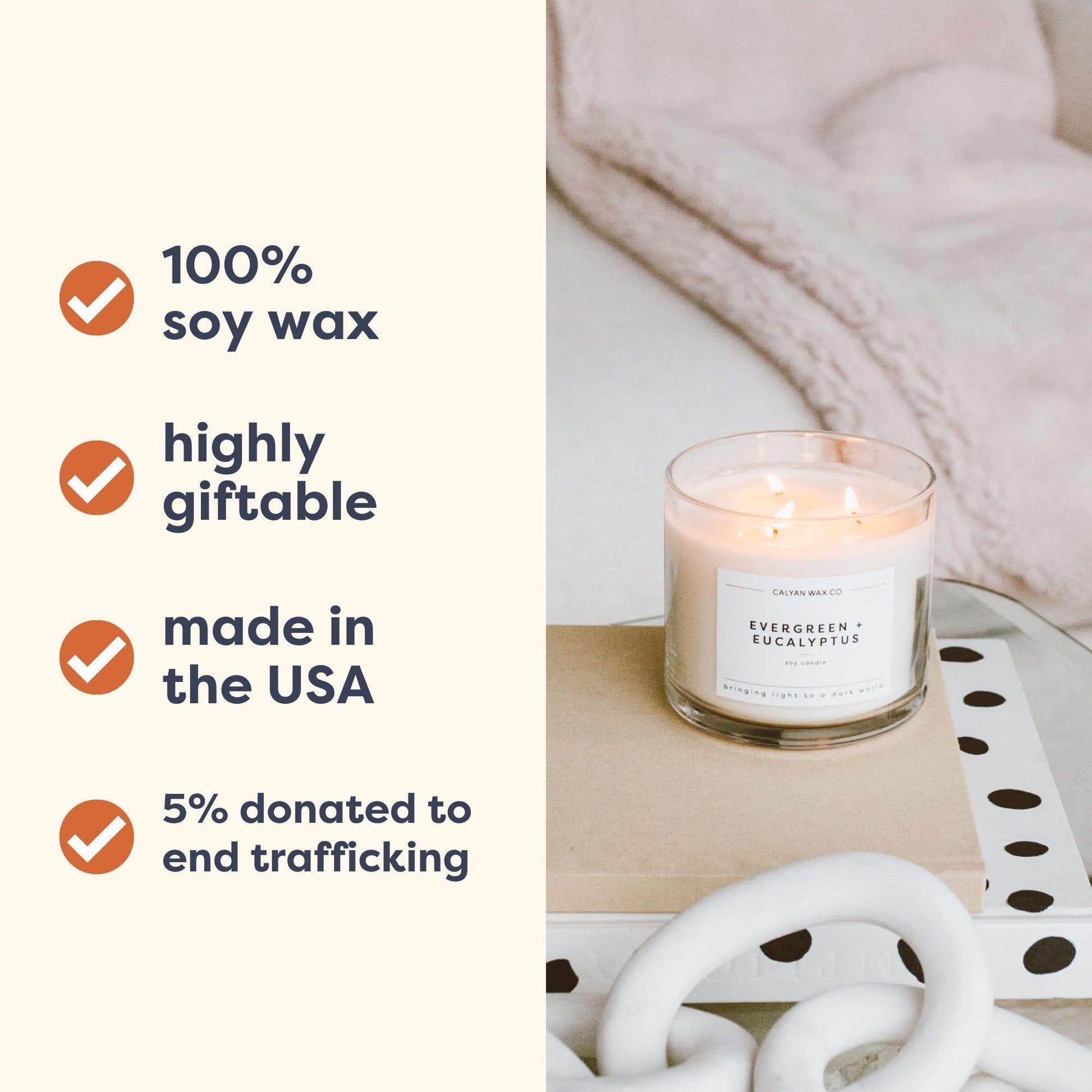 - CANDLE GIFT that gives back: Calyan Wax donates 5 percent of profit to nonprofits dedicated to ending trafficking in the USA. Perfect birthday gifts for women, housewarming gifts, gifts for mom, or thank you gifts.