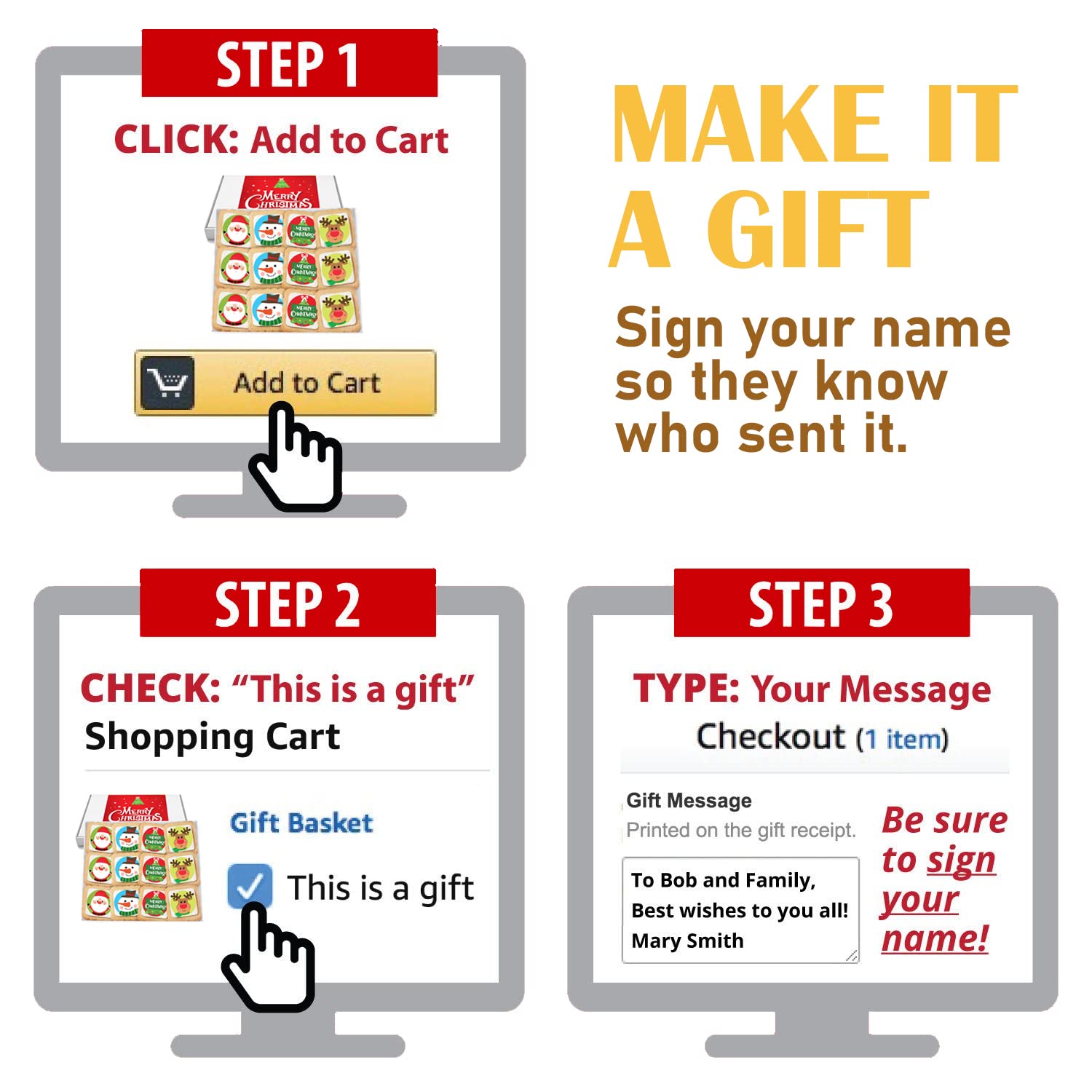 - π This Fun Gourmet Christmas gift basket will surely bring a smile to someone special of any age. Men, Women, children, boys or girls alike will enjoy this beautiful, fun set of cookies.