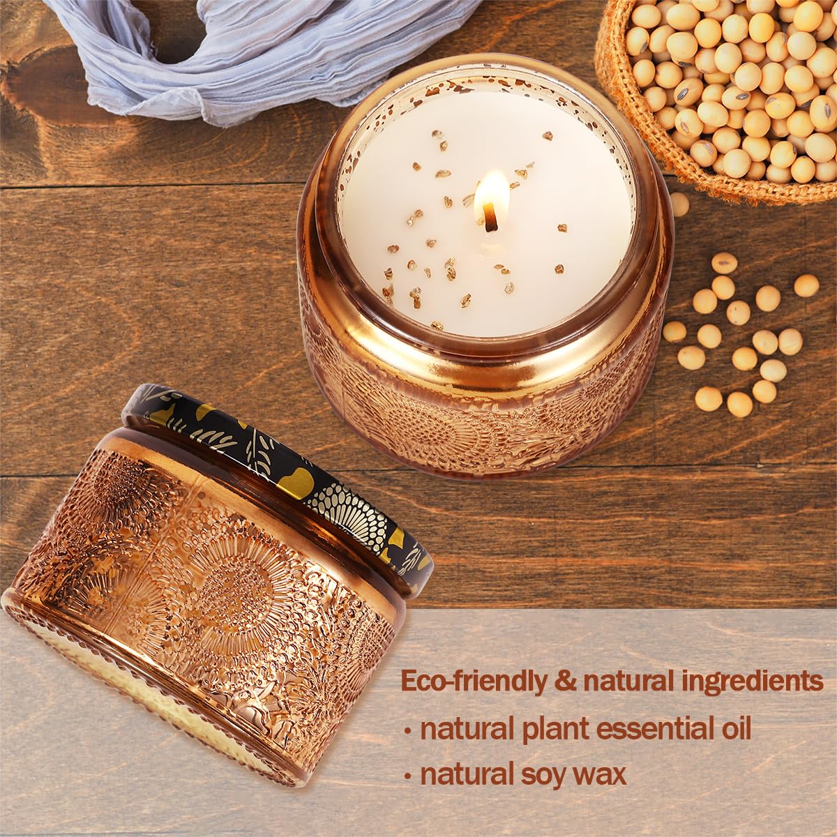 - Material: The candle made of natural soybean wax. These candle are filled with high-quality essential oils to make your home full of beautiful fragrance. The rotatable blades are made of lightweight metal and it can spin quickly when you light the candle.