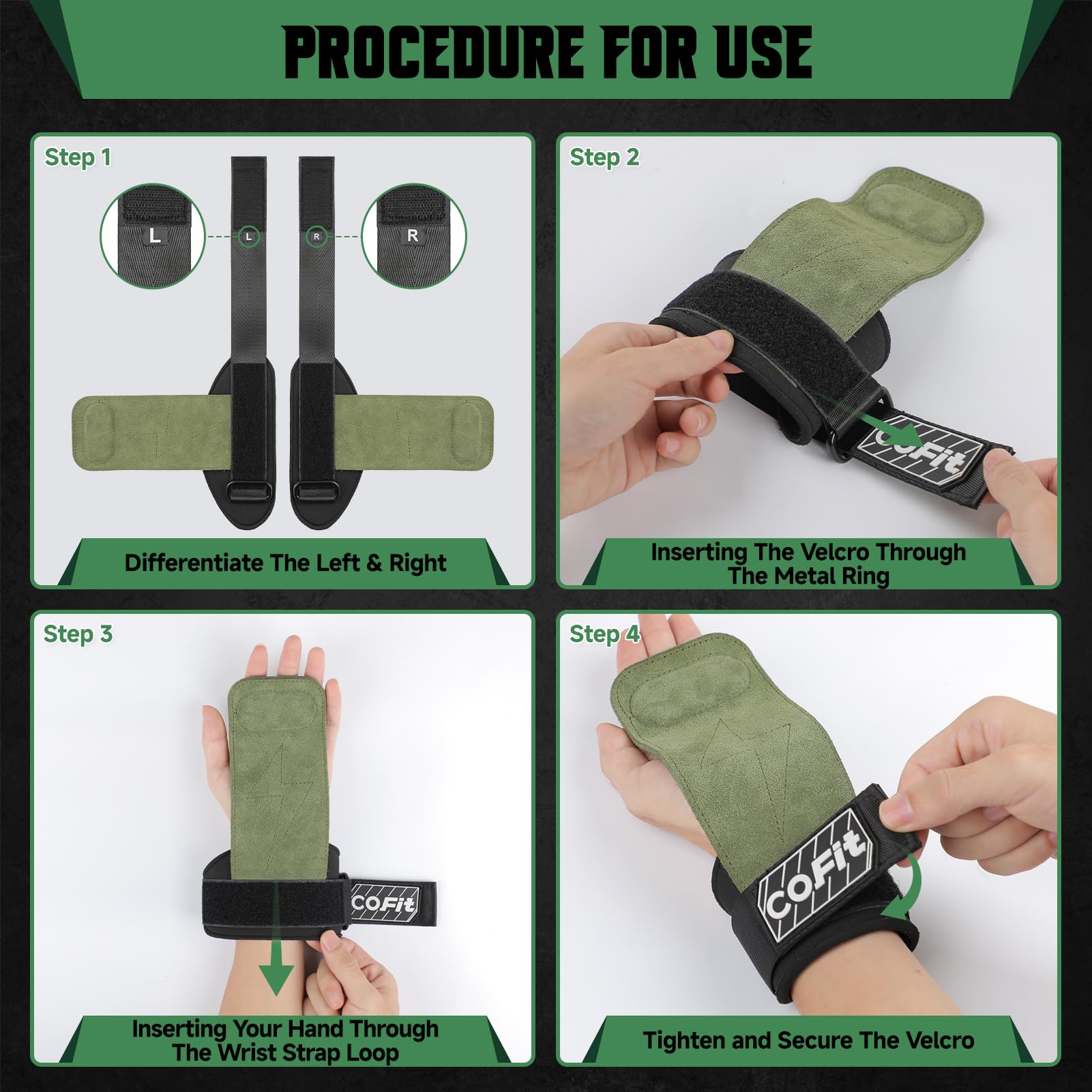 COFIT Wrist Straps for Weightlifting, Workout Wrist Wraps with Dual-Layer Oxford Leather, Enhanced Grip for Optimal Hand and Wrist Protection, Gym Lifting Straps for Deadlift and Powerlifting - Green