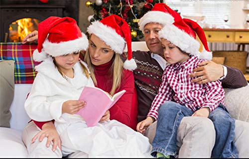 COOLJOY 6 Pack Plush Santa Hat, Traditional Red and White Plush Christmas Santa Hat for Christmas Party, Adult Size