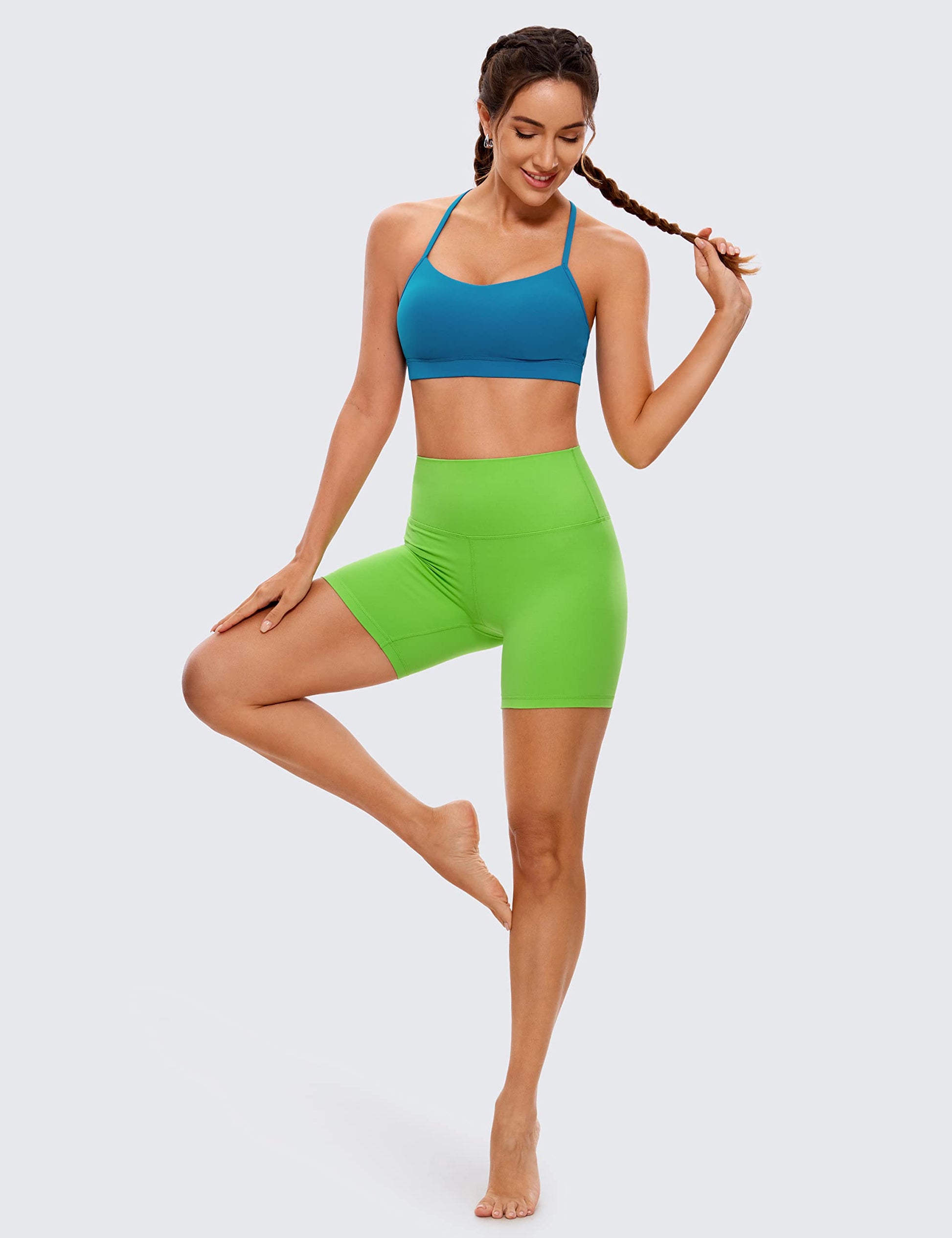 CRZ YOGA Butterluxe Womens Y Back Sports Bra - Padded Racerback Low impact Spaghetti Thin Strap Workout Yoga Bra Super-sonic Blue X-Small