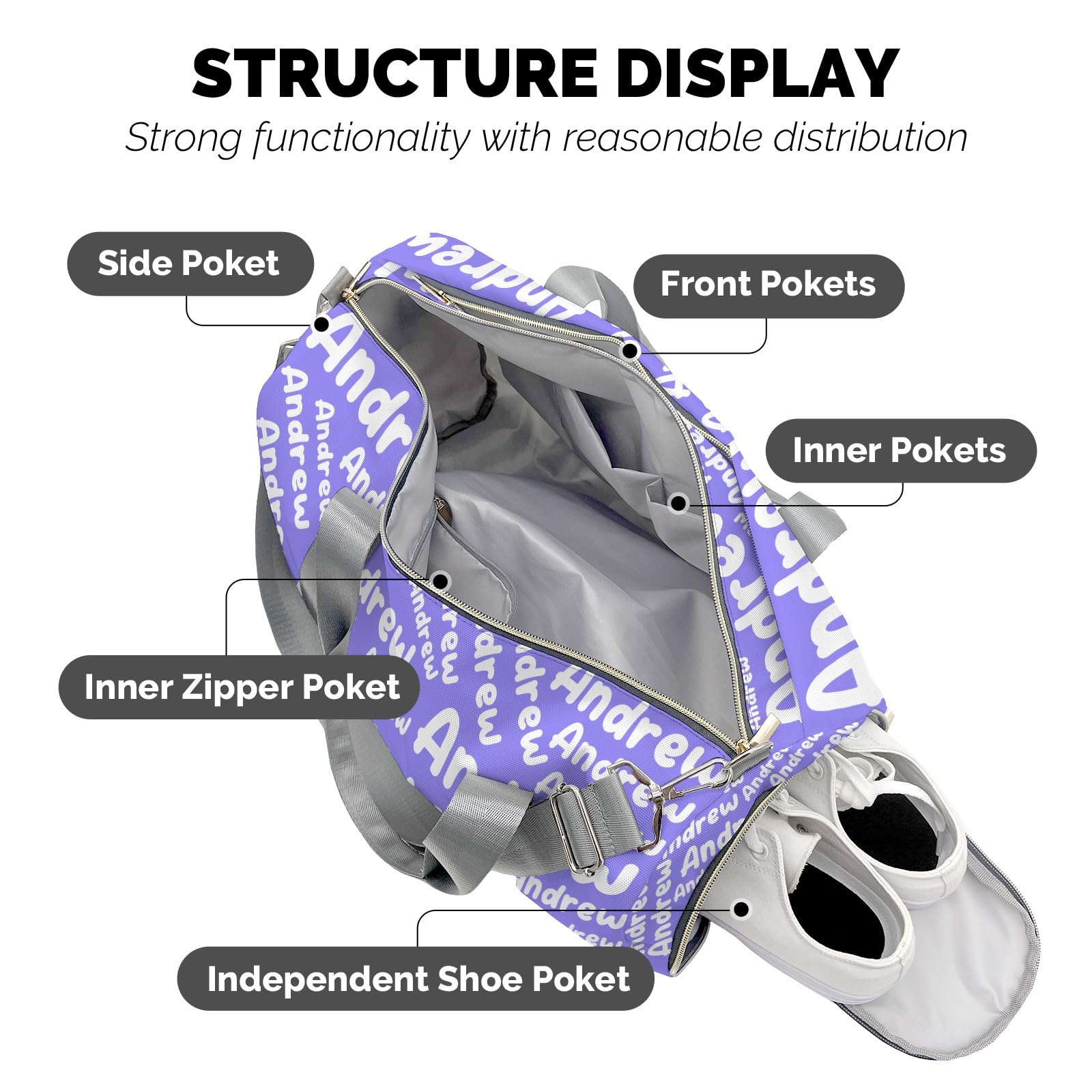 Customized Travel Duffel Bag with Name Weekender Overnight Bags Light Purple Personalized Sports Gym Bag Waterproof Luggage Bag for Women