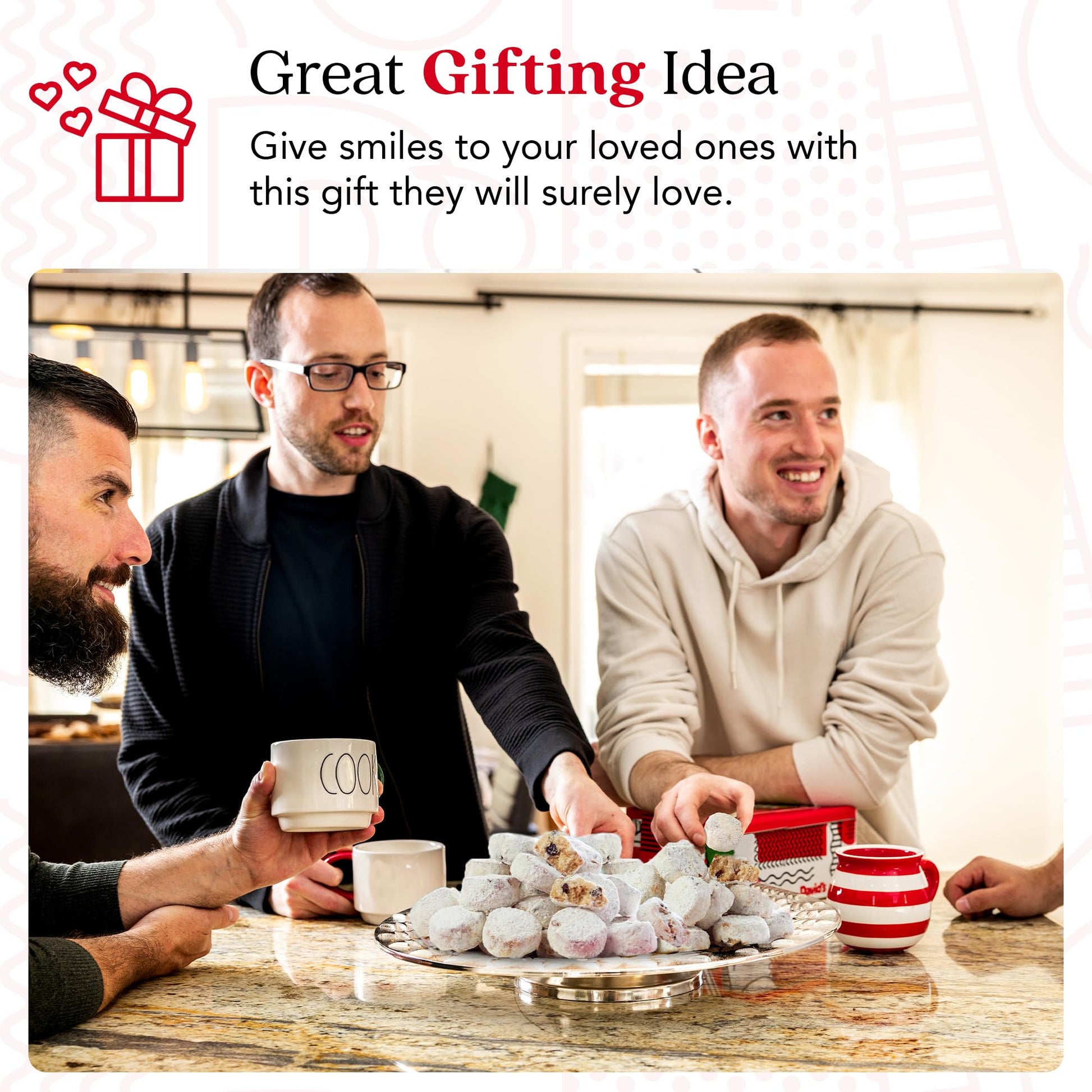 - Fresh Out Of The Oven: Unlike similar products on the market, David’s Cookies bakery desserts arrive in a beautiful cookie tin, preserving their freshness for longer, keeping your sweets protected against humidity and impurities.