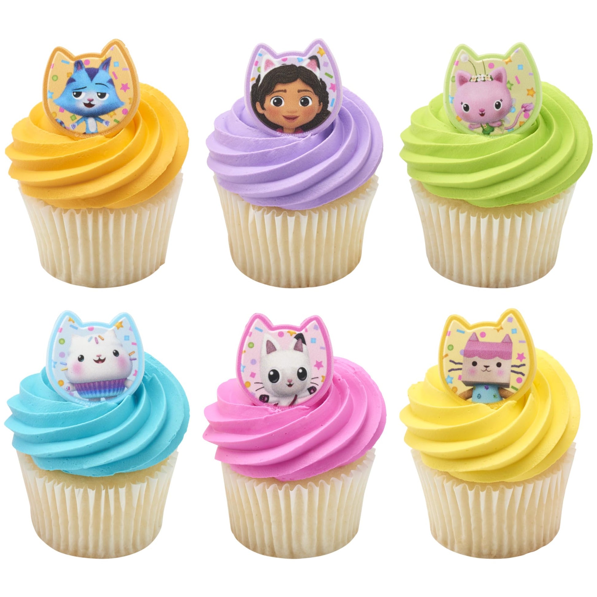 - DecoPac DreamWorks Gabby's Dollhouse Cupcake Rings - 72 Colorful Cupcake Rings featuring Gabby, Pandy Paws, Cakey Cat, CatRat, Kitty Fairy, and Baby Box.