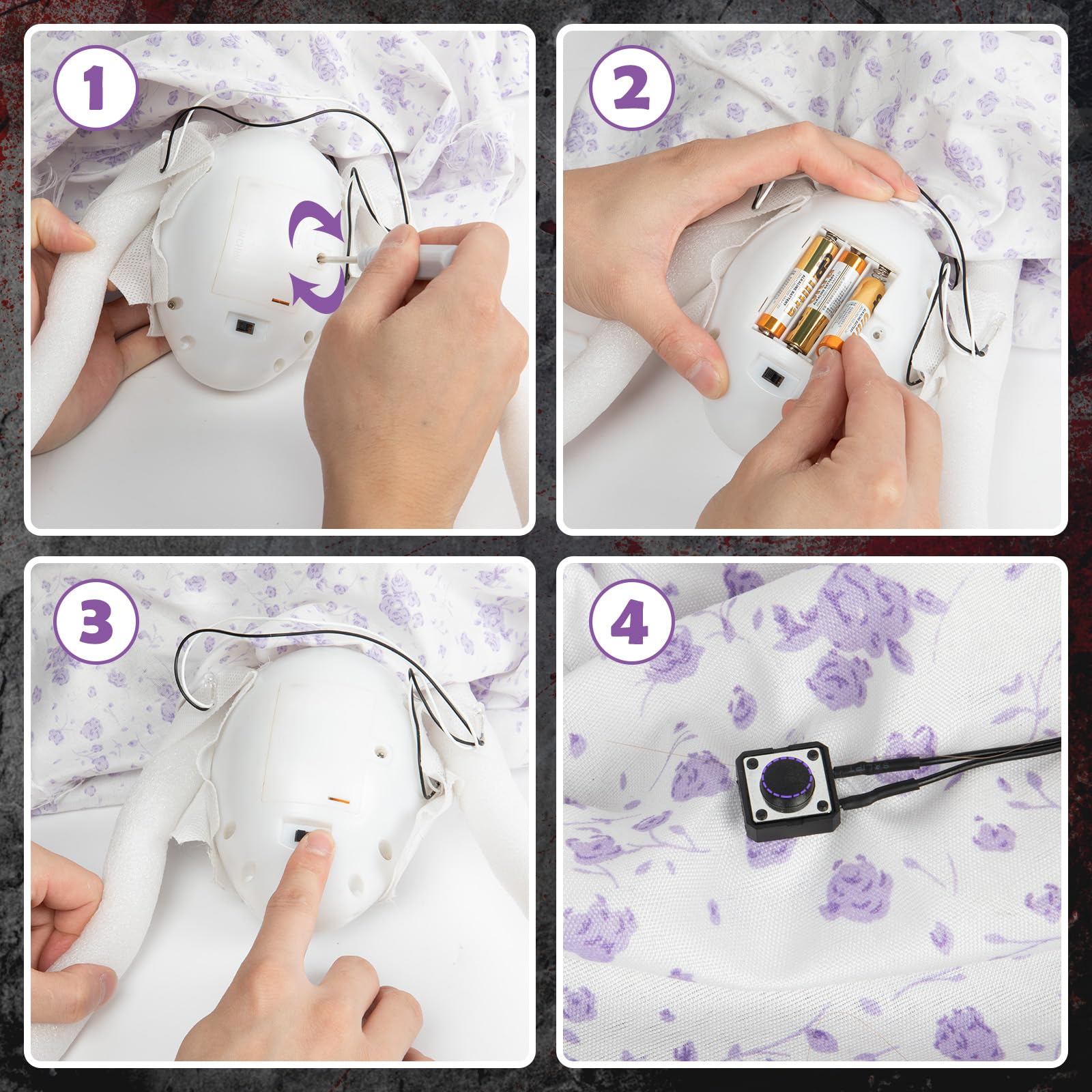 - Ease of Use: Featuring a convenient hanging rope and powered by batteries (not included) for portability, you can easily hang this Halloween prop wherever you desire.