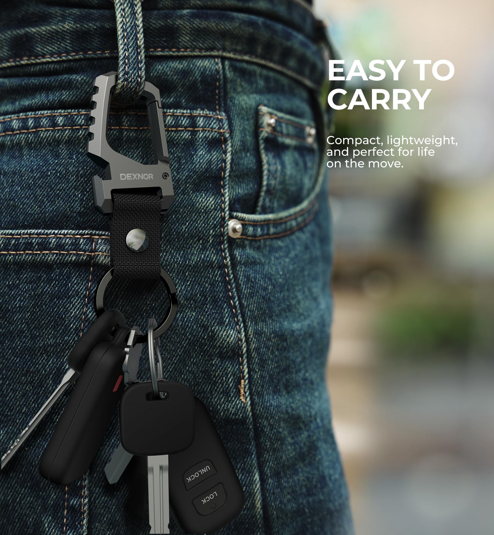 - Clip with confidence: The heavy-duty carabiner comes with a large hook opening for easily clipping onto your belt loops, backpack, or other gear, ensuring your keys are always close at hand when you're driving, motorcycling, or heading home.