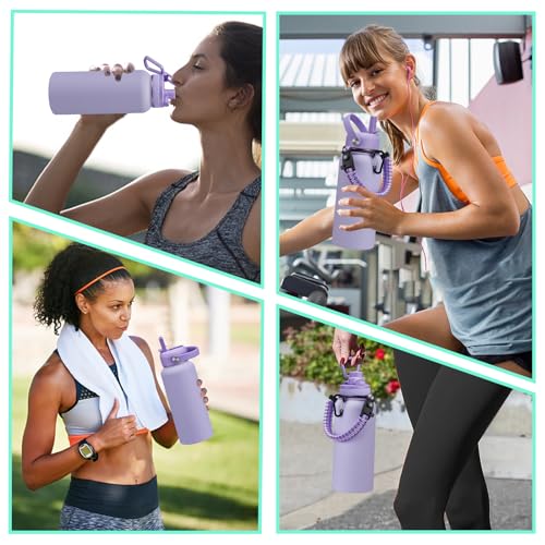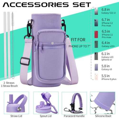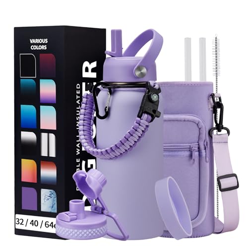 - SUPER JOYFUL COMBO: Buy 32 oz water bottle and get 9 accessories (2 x lids, 1 x survival paracord, 1 x carrying pouch, 1 x shoulder strap, 1 x protective cup mat, 2 x straws, 1 x straw brush). WITH A LIFETIME GUARANTEE, these thermal water bottles are perfect gifts for using at home, work, school, road trips, hiking, sporting events, or just hanging out