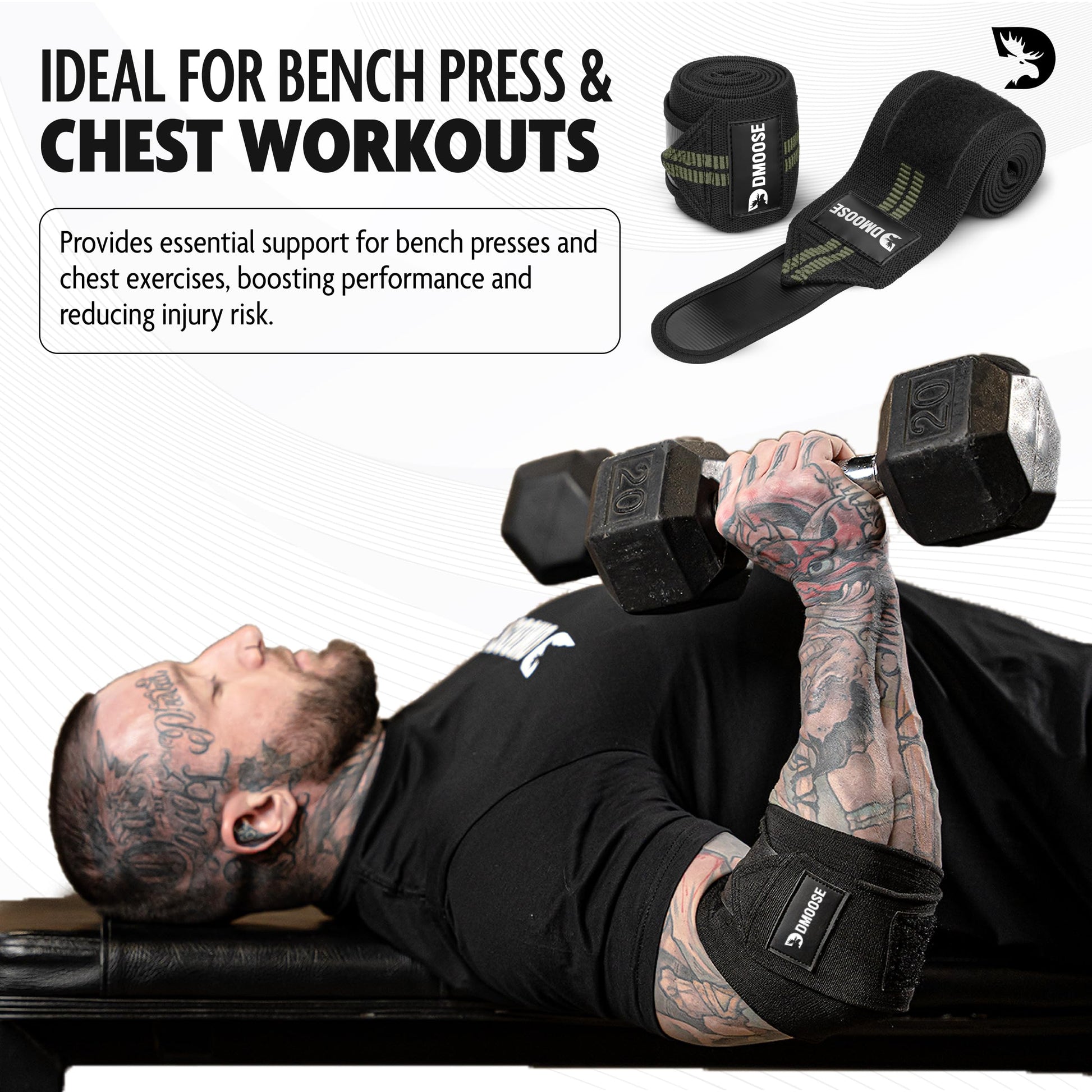 - HELP YOU ACHIEVE MAXIMUM STRENGTH: DMoose weight lifting elbow wraps for men are a great way to increase your strength and stability while exercising. They provide maximum support, keep you away from inflamed joints which can cause soreness.