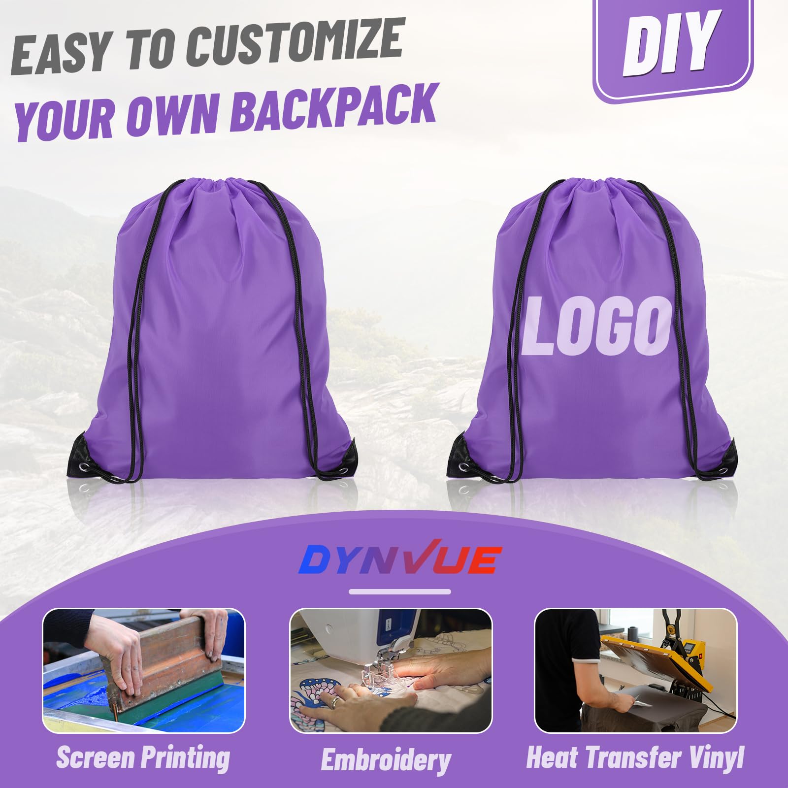 Dynvue 12pcs Drawstring Backpack Sport Gym Bag, 13.39"x16.93" Cinch Bags Drawstring Sport Backpack, Water Resistant String Bag for Gym, Reinforced Draw String Bag Pack Bulk for DIY Beach Sport, Purple