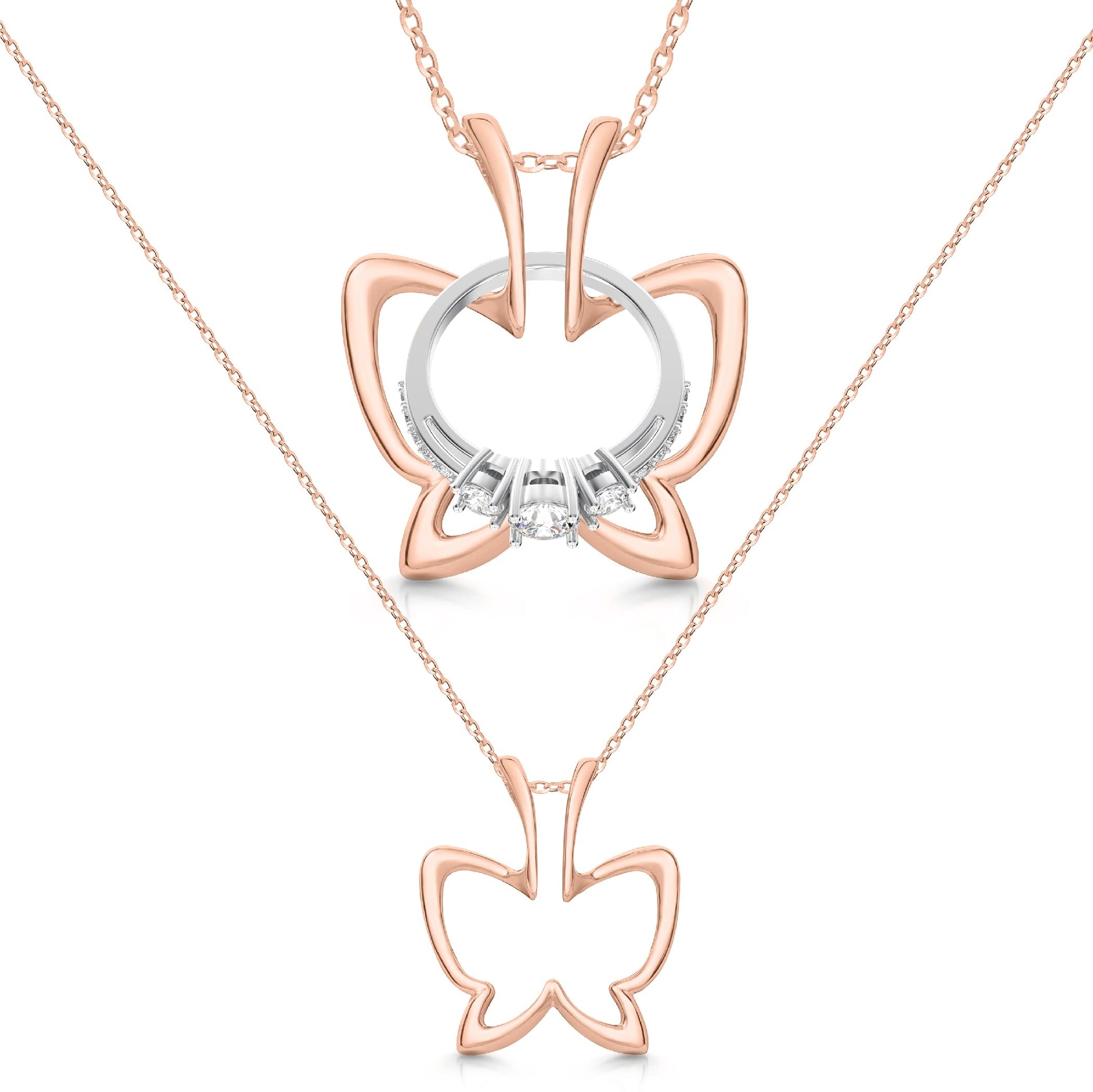Emily C Ring Holder Necklace - Stainless Steel Necklace with Rose Gold Finish - Engagement Gift for Doctors & Nurses - Gift for Mom or Grandmother - Butterfly