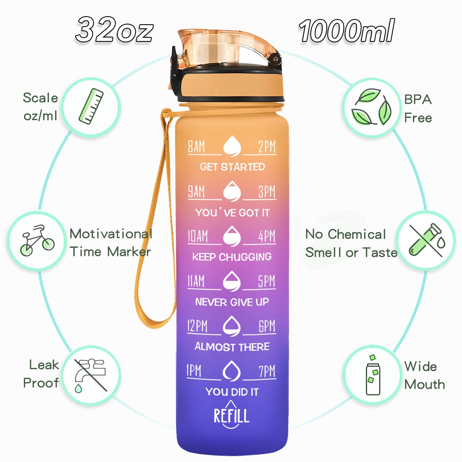- 【Stay Motivated and Hydrated】32 oz water bottle with unique quote and time marker are inspirational, convenient for tracking your daily water intake and reminding you of being hydrated. Drinking bottles is suitable for any activities.