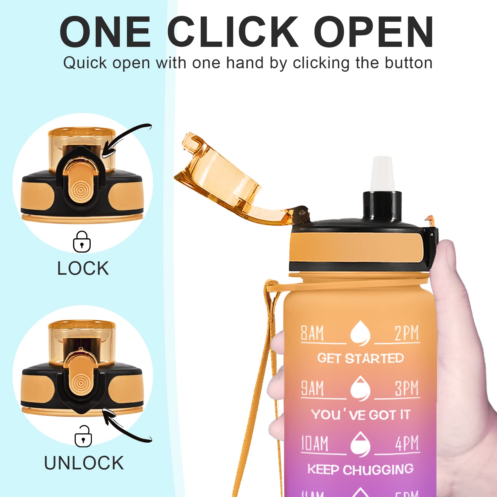 - 【Humanized Design】Water bottles with times to drink can quick open with one hand. The flip-top lid is used a secure lock, making it dust-free and leak-proof. Time water bottle is portable, light, and easy to use.