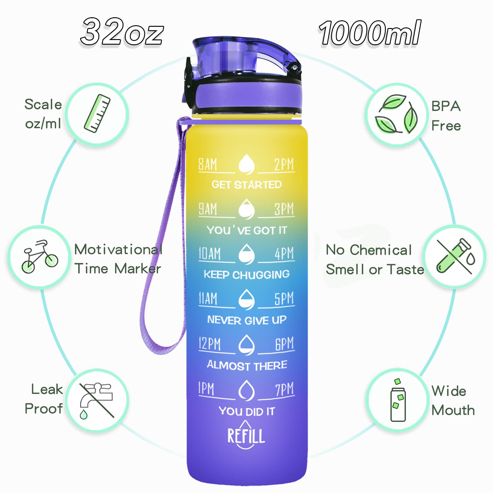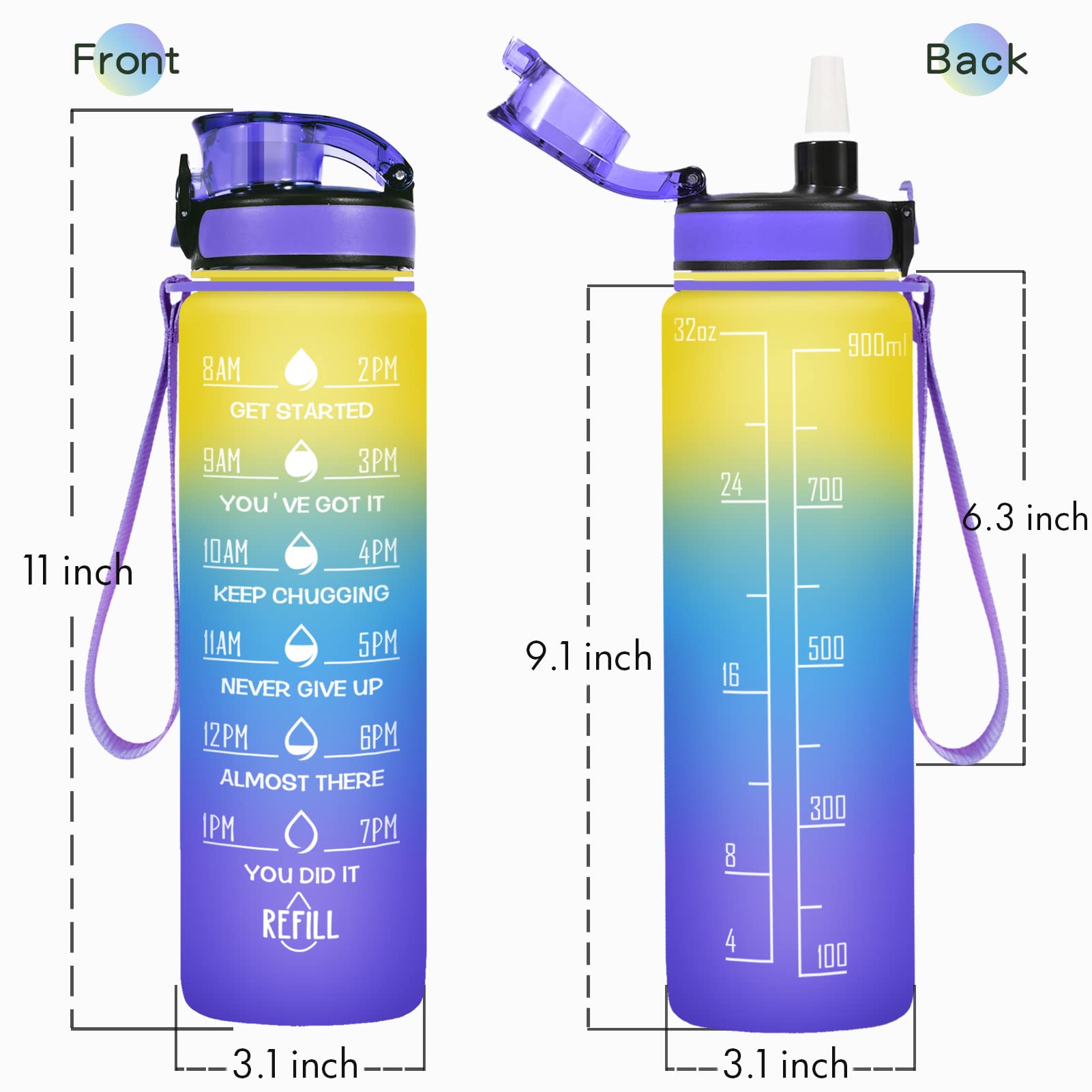 - 【Stay Motivated and Hydrated】32 oz water bottle with unique quote and time marker are inspirational, convenient for tracking your daily water intake and reminding you of being hydrated. Drinking bottles is suitable for any activities.
