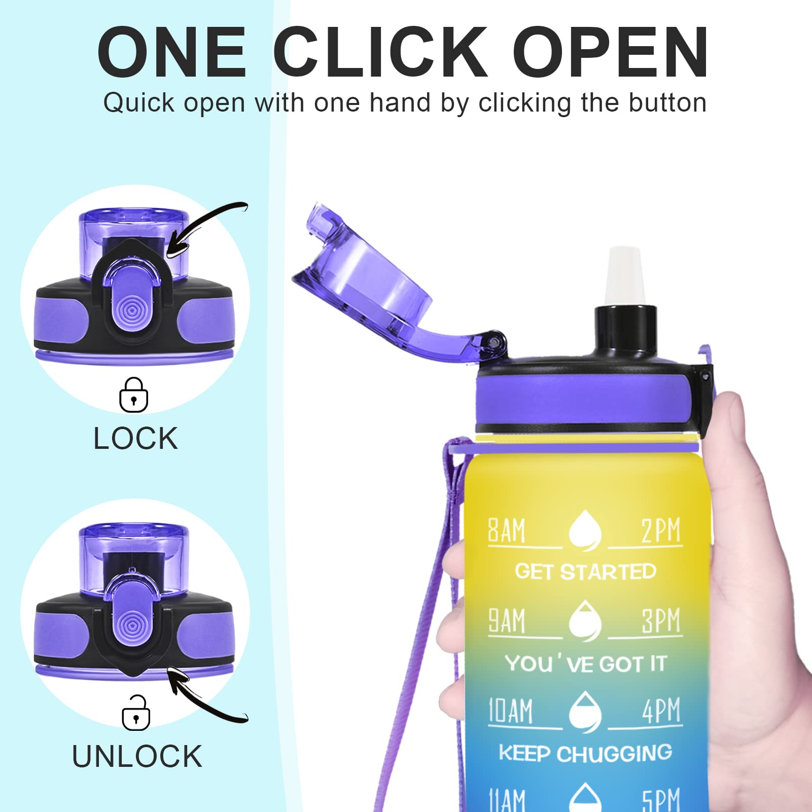 - 【Humanized Design】Water bottles with times to drink can quick open with one hand. The flip-top lid is used a secure lock, making it dust-free and leak-proof. Time water bottle is portable, light, and easy to use.