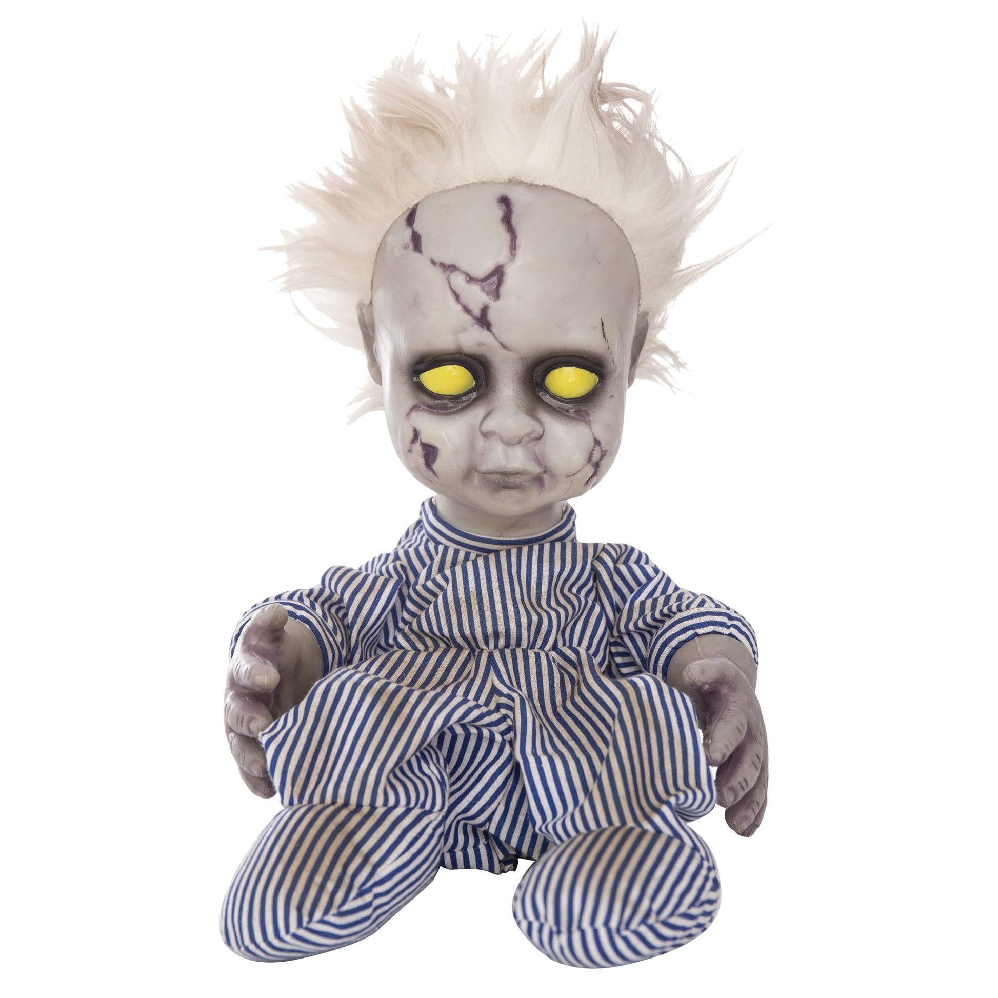 - Creepy doll faces and making realistic crying noises, kicking legs restlessly. Double stimulation of visual and auditory stimulation, adding more creepy atmosphere to your horror house.